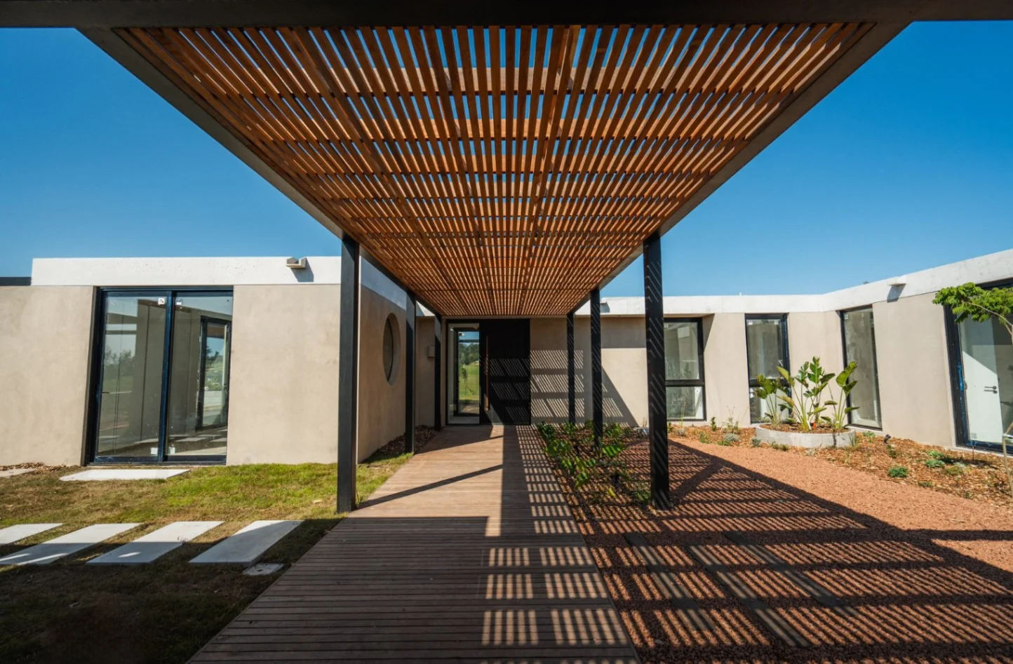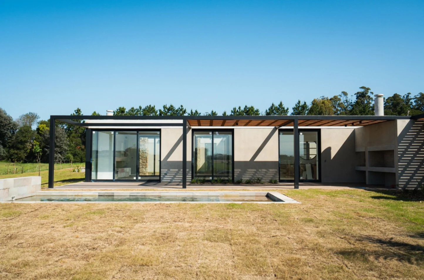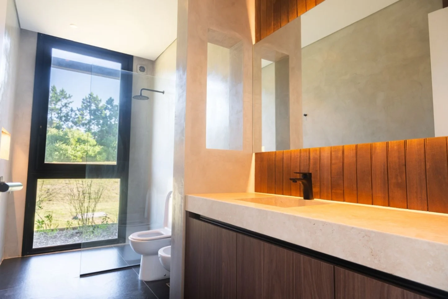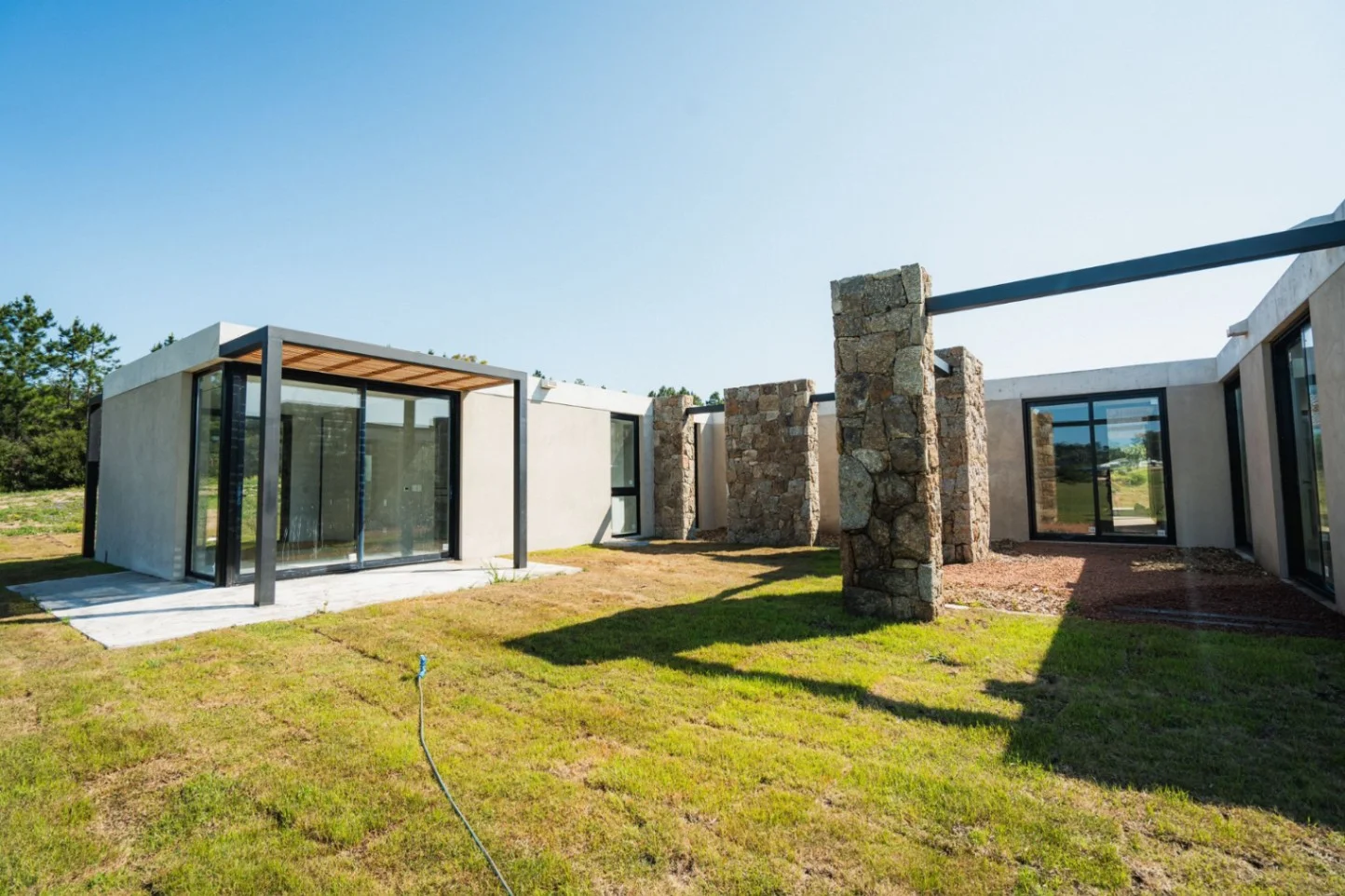 Con 275 m² interiores y 200 m² de terrazas, la casa ofrece cuatro dormitorios de generosas dimensiones (dos en suite), cocina integrada con isla, barra y parrillero, lavadero independiente y un sector social que se conecta de forma natural con la piscina y el jardín. Su diseño prioriza la luz natural: dormitorios orientados al este para recibir el sol de la mañana y zonas comunes bañadas por la luz del norte y oeste, creando un ambiente ideal para el descanso y la vida al aire libre.