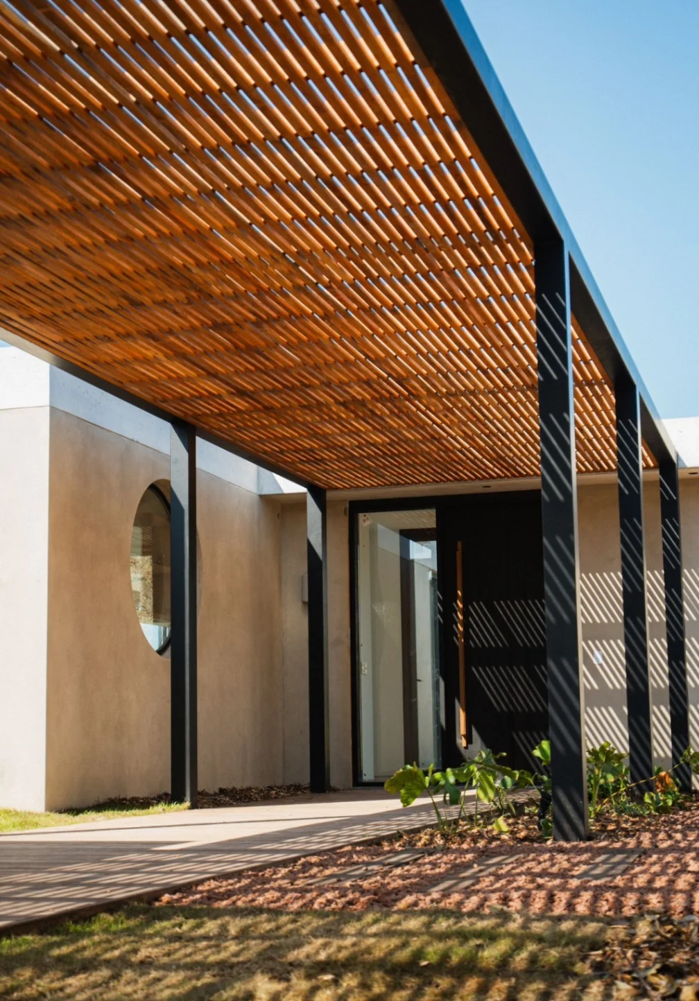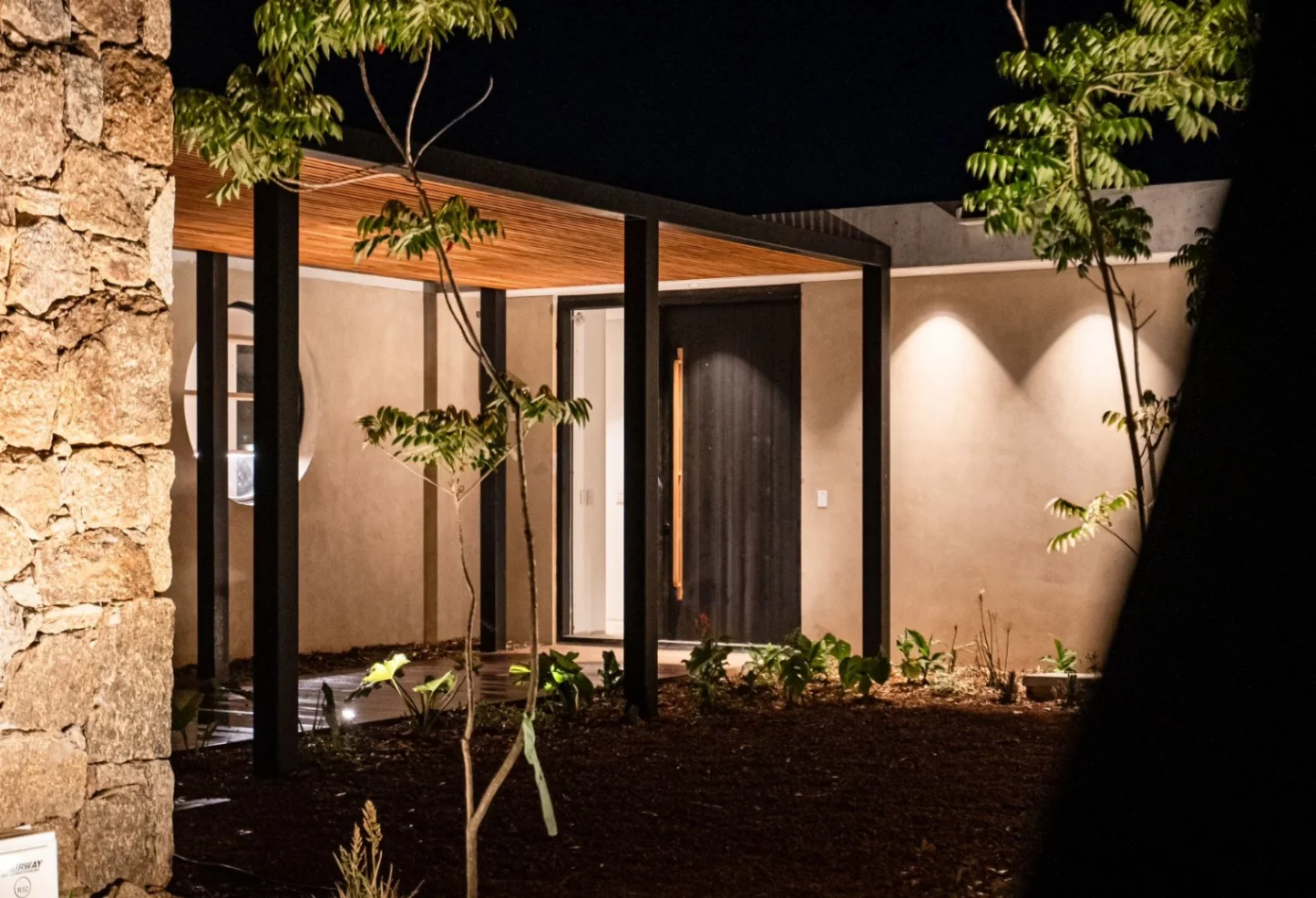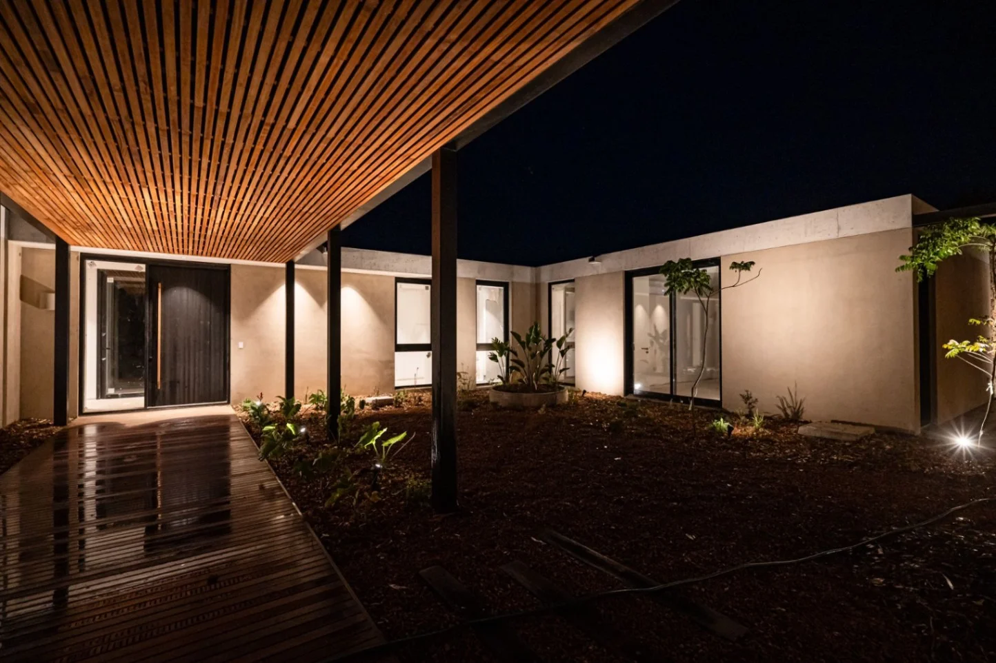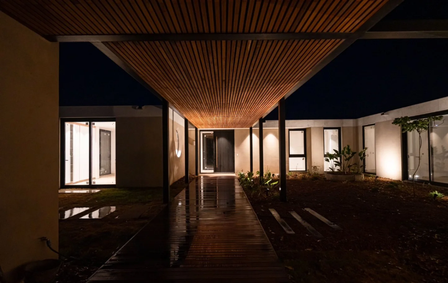 Con 275 m² interiores y 200 m² de terrazas, la casa ofrece cuatro dormitorios de generosas dimensiones (dos en suite), cocina integrada con isla, barra y parrillero, lavadero independiente y un sector social que se conecta de forma natural con la piscina y el jardín. Su diseño prioriza la luz natural: dormitorios orientados al este para recibir el sol de la mañana y zonas comunes bañadas por la luz del norte y oeste, creando un ambiente ideal para el descanso y la vida al aire libre.