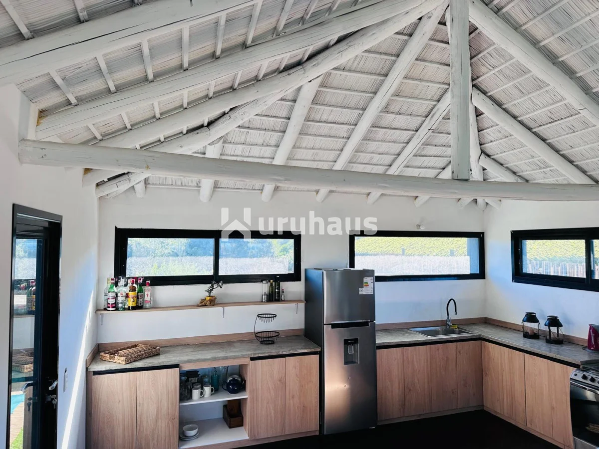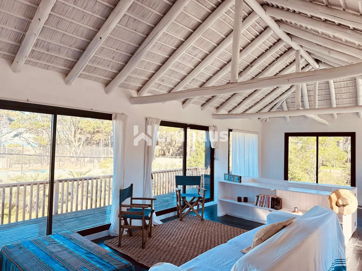 Casa en venta en barrio San Vicente, muy luminosa con grandes ventanales y favorable orientación. Desarrollada en dos plantas. - Planta alta : Gran living comedor ,cocina integrada , playroom u oficina con acceso a terraza, todos los ambientes cuentan con vista al mar. - Planta baja : Hall central, 4 dormitorios y 3 baños. 1 Dormitorio en suite con vestidor. 3 Dormitorios adicionales y 2 baños. Espectacular jardín con parrillero techado, piscina, y dormitorio de servicio con Laundry. Ubicación privilegiada a tan solo 100 mts. del mar. Dentro de un excelente barrio privado entre José ignacio y Manantiales. El terreno es de 577m2 y edificados son 185m2. Uruhaus - Feel at home. Referencia Interna : Tera-2262