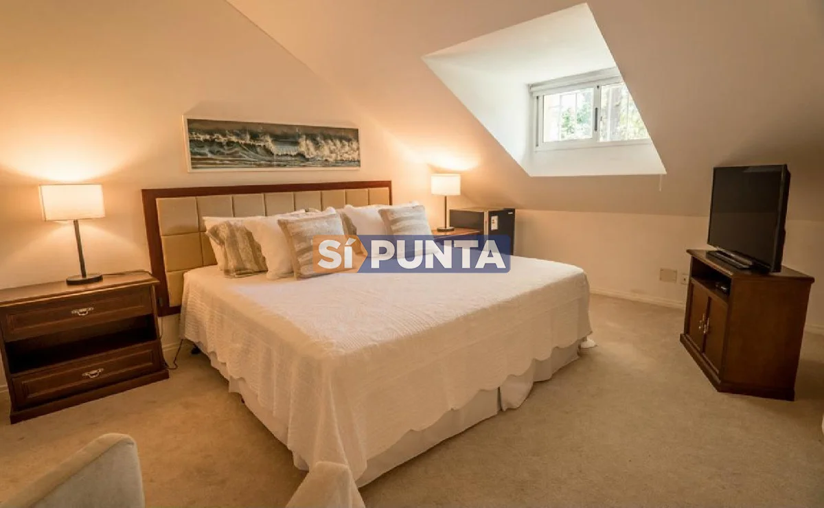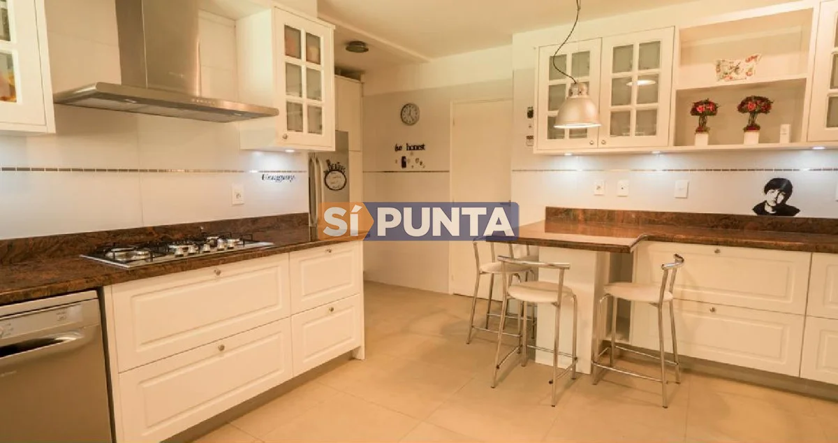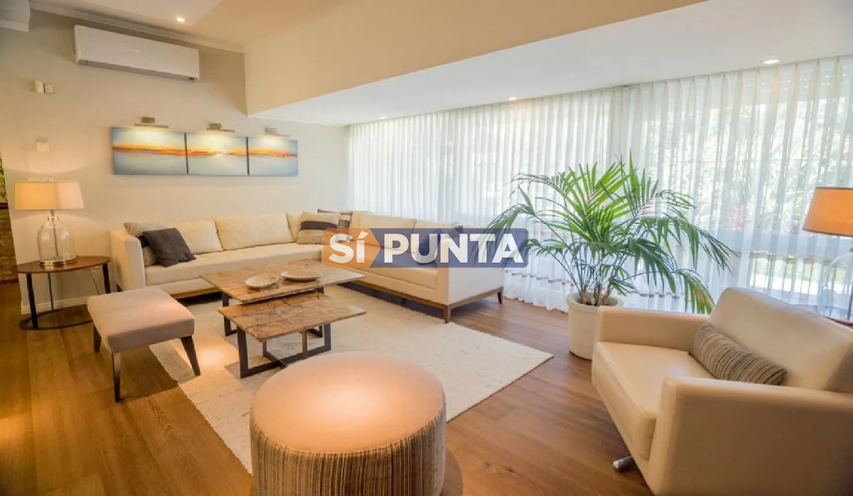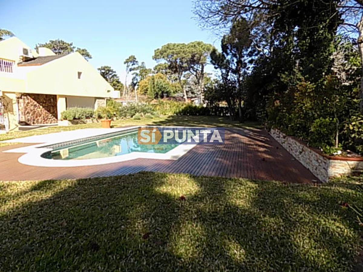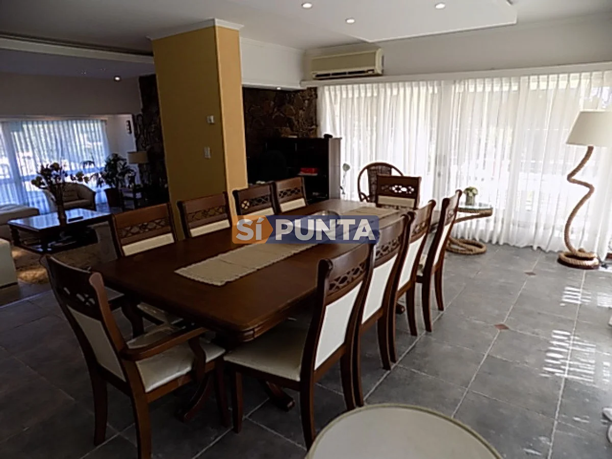 En el corazón de Playa Mansa encontramos esta hermosa residencia. Cuenta con gran jardín, piscina climatizada y barbacoa. Comodidades: - Living - Estufa a leña - Playroom - Comedor - Cocina - 6 Dormitorios (2 suites) - 4 Baños - Dependencia de servicio - Piscina climatizada - Barbacoa Referencia Interna : Tera-902