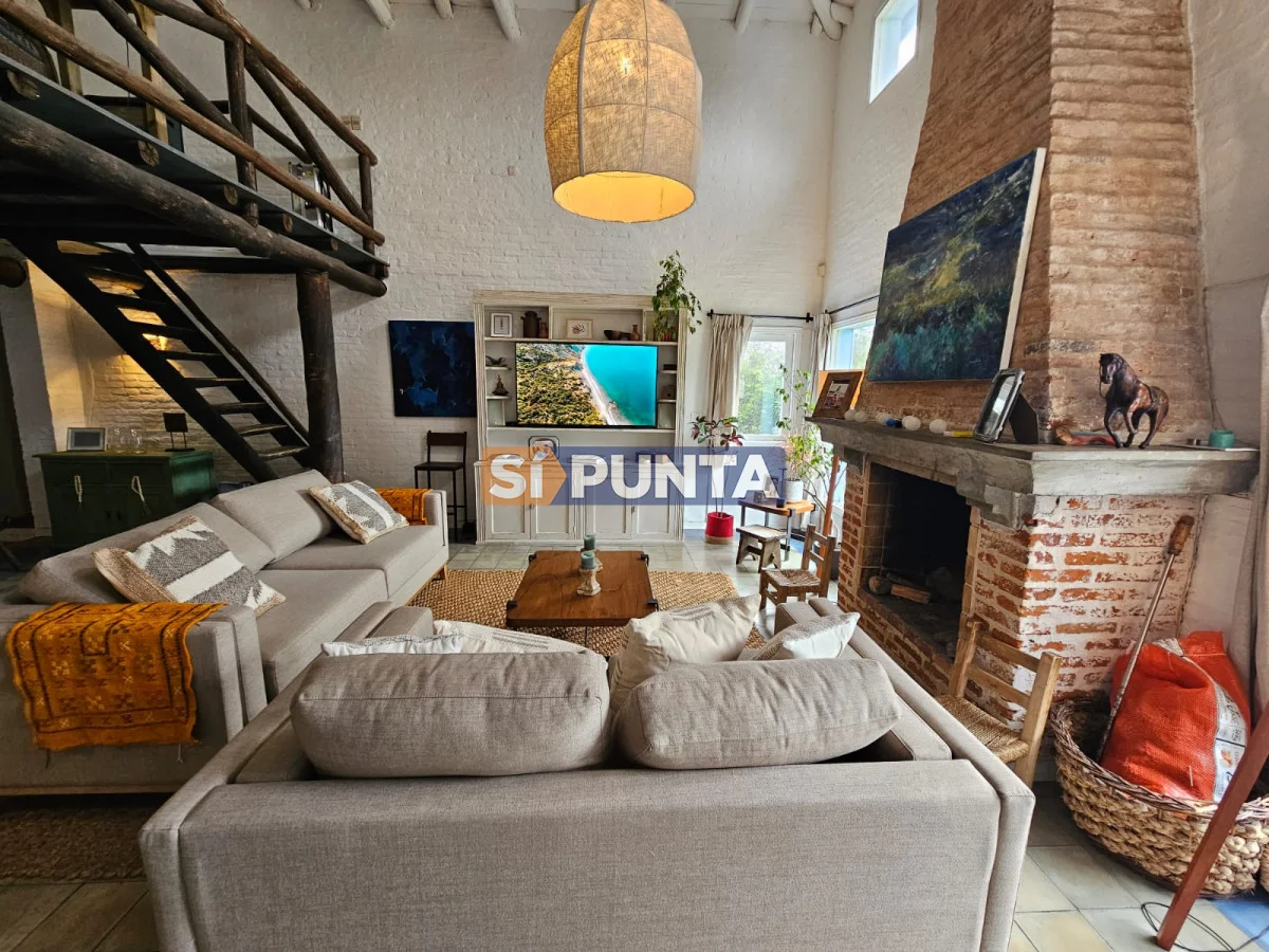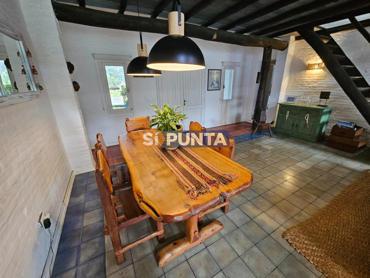 Preciosa casa ubicada a pocas cuadras del mar en La Barra. Rodeada de árboles. Comodidades: - Amplio y luminoso living comedor - Cocina totalmente equipada - 3 Dormitorios, (1 suite) - 2 Baños - Dependencia de servicio completa - Parrillero techado con horno de barro - Piscina climatizada Referencia Interna : Tera-895