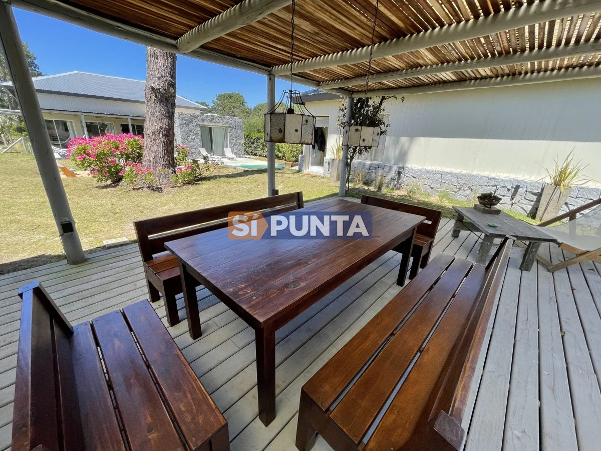 Ubicada en barrio privado, todos los servicios. Cuenta con amplio jardín. Comodidades: - Living comedor - Estufa a leña - Cocina integrada - 3 Dormitorios (1 suite) - 2 Baños - Playroom - Dependencia de servicio - Lavadero - Gran jardín - Piscina - Parrillero techado - Casa de huéspedes con capacidad para 2 personas - Cochera para 3 vehículos Referencia Interna : Tera-923