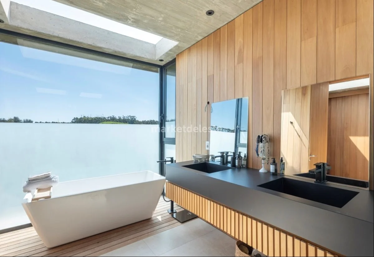 En un exclusivo barrio privado de Manantiales, esta residencia firmada por el reconocido arquitecto Martín Gómez combina diseño, confort y una integración perfecta con la naturaleza. Con 3 dormitorios en suite, incluido un master con vestidor y estufa, la propiedad ofrece amplios ambientes, living con estufa de alto rendimiento y vistas abiertas a la laguna, cocina de alto nivel, comedor formal y una elegante barra de tragos.