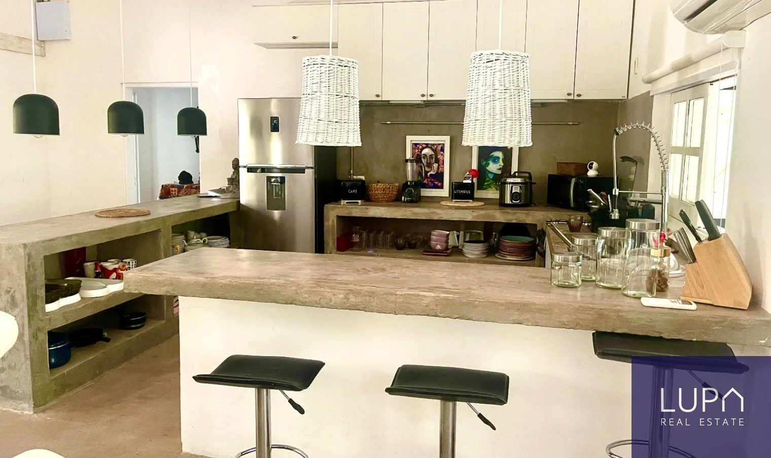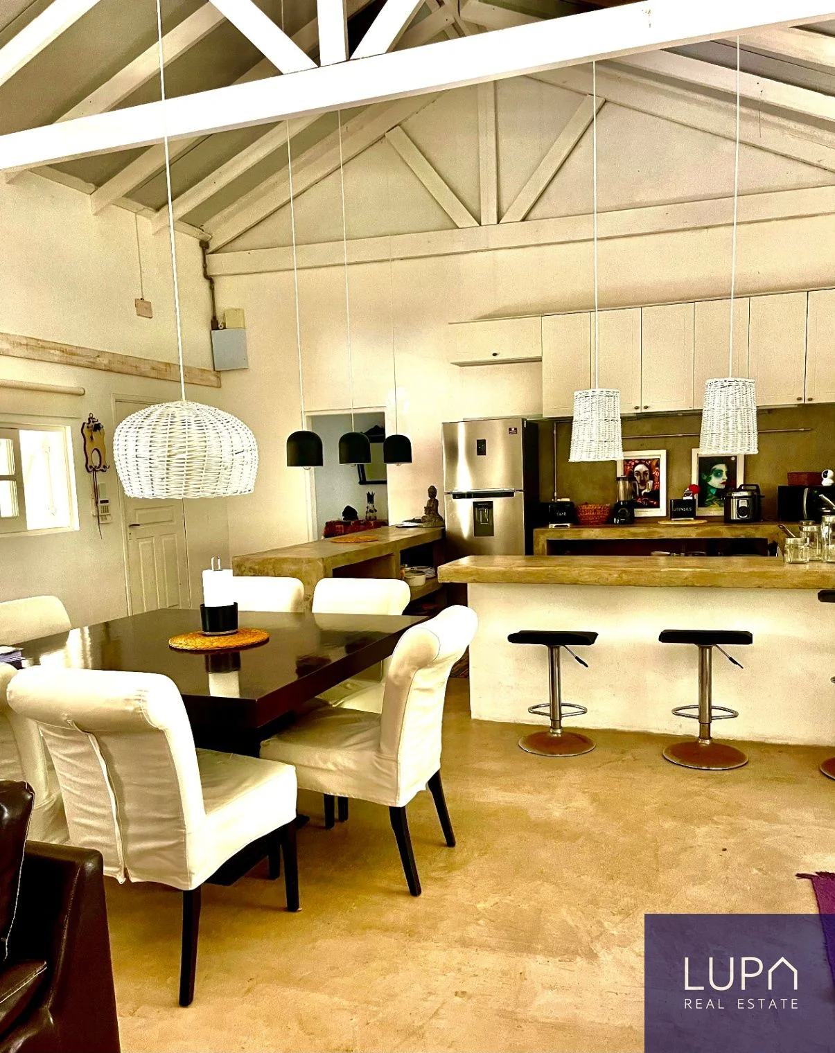 Destaca por sus amplios y luminosos ambientes, destacando un gran living comedor con estufa a leña de gran tamaño que brinda un ambiente acogedor, además de aire acondicionado para mayor confort. La cocina, completamente equipada, se integra de manera fluida con el estar, creando un espacio ideal para el disfrute familiar y social.