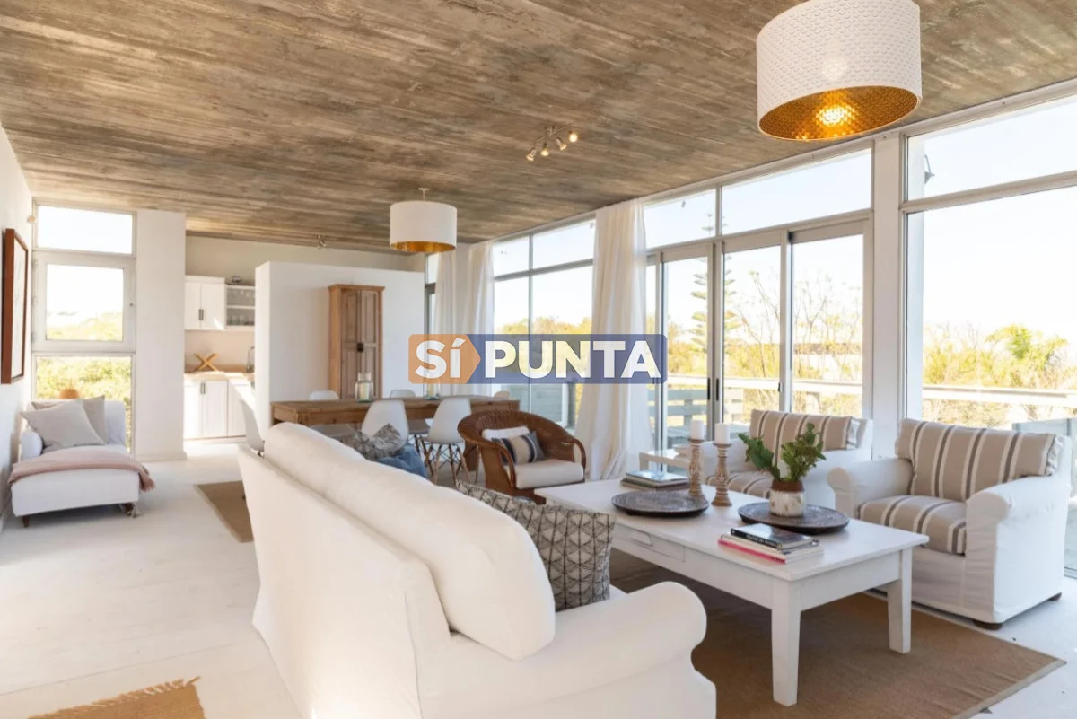 Disfrutar de la tranquilidad de La Juanita y estar a pasos de José Ignacio es posible! Amplia casa construida en dos pisos, con vista al mar. Excelente parque con piscina y parrillero. Comodidades: - Living comedor - Cocina - 3 Dormitorios (1 suite) - 2 Baños - Dependencia de servicio - Lavadero - Gran jardín - Piscina - Parrillero Referencia Interna : Tera-4