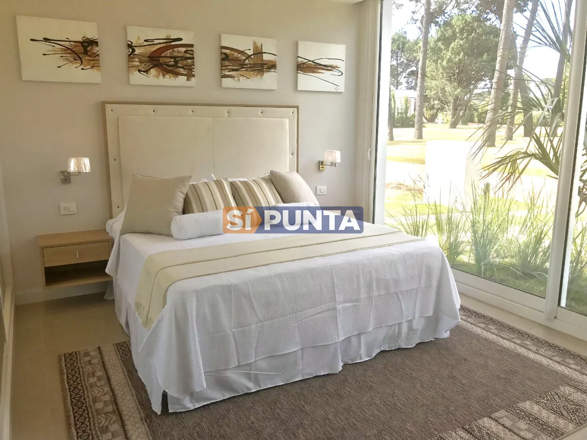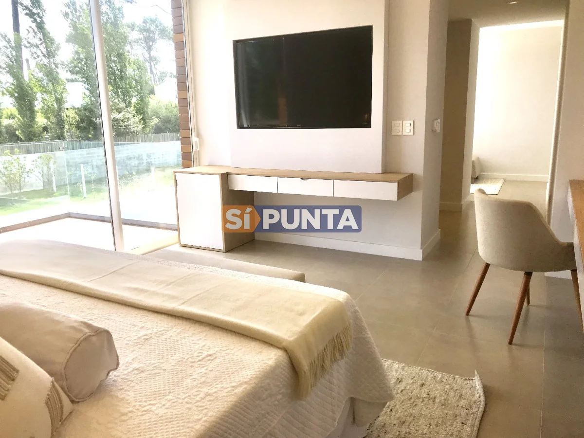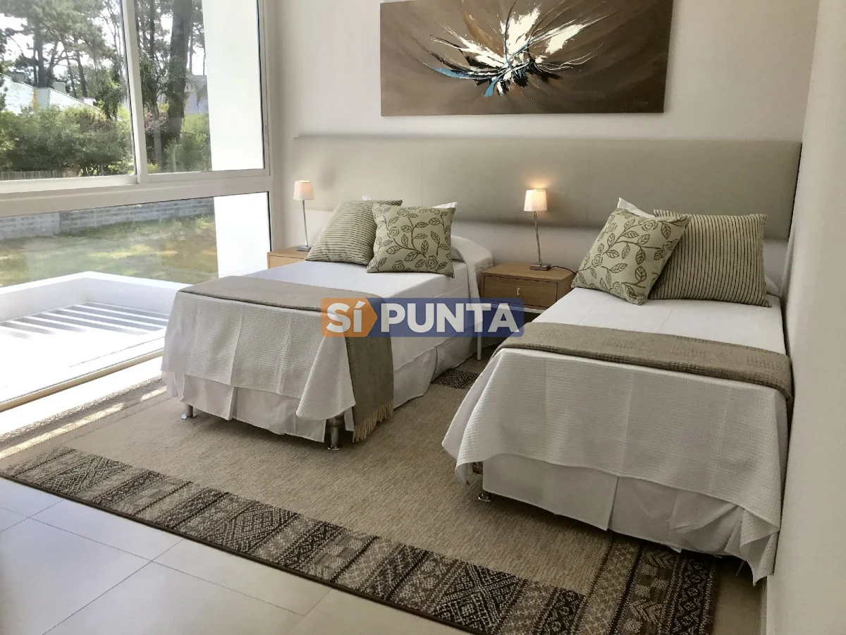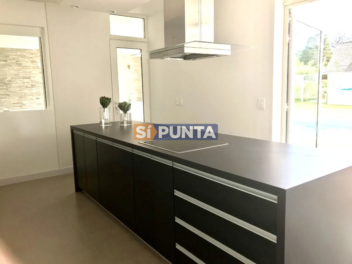 Hermosa casa ubicada dentro de exclusivo barrio privado de Punta del Este. Diseño elegante y moderno desarrollado en dos niveles. Se implanta en un predio de 880 m2 donde predomina un entorno verde y tranquilo. Parrillero techado, pérgola exterior y solárium, piscina climatizada. Comodidades: - Living - Estufa a leña - Comedor - Cocina - 4 Dormitorios (4 suites) - 4 Baños - Dependencia de servicio - Hermoso jardín - Piscina climatizada - Parrillero techado - Garaje para 2 autos Referencia Interna : Tera-2677
