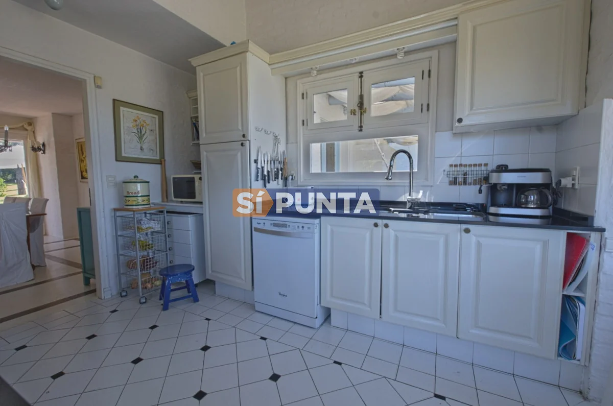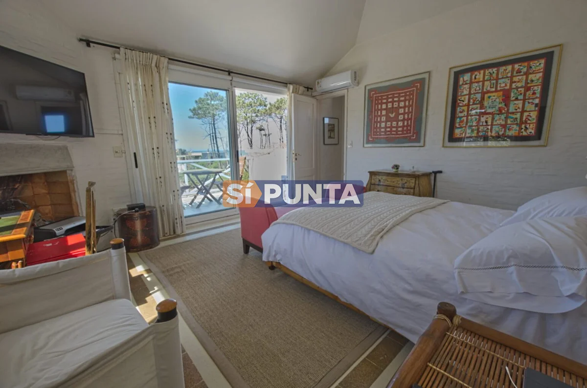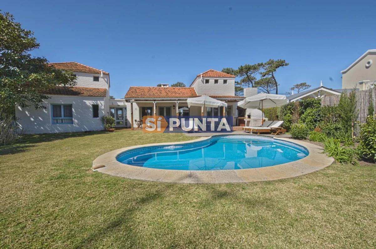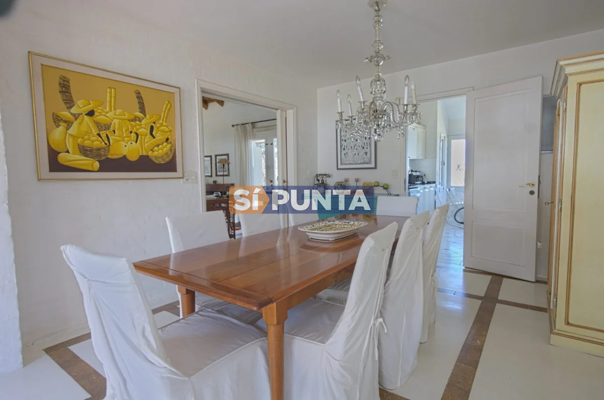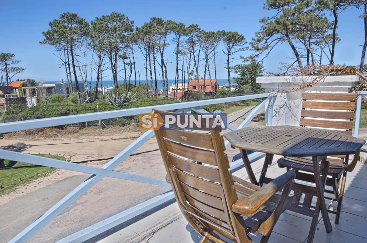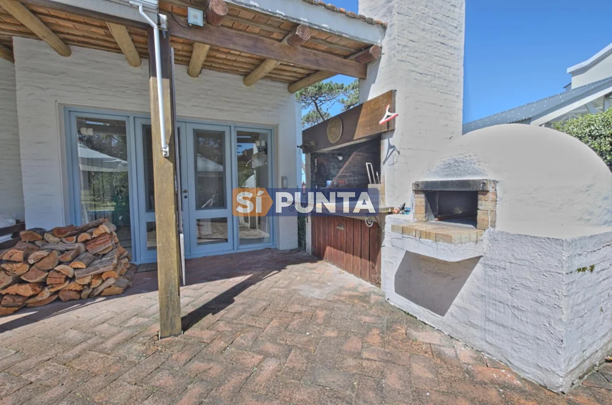 Excelente y elegante casa con vistas al mar. A solo 350 metros de la playa Montoya. De muy buena construcción y desarrollada en dos plantas. Comodidades: - Living - Aire acondicionado y losa radiante en todos los ambientes - Estufa a leña - Comedor - Cocina definida - 4 Dormitorios (2 suites) - 3 Baños - Dependencia de servicio independiente - Galería con vistas al mar - Galería techada con parrillero y horno de barro - Amplio y muy lindo jardín - Piscina - Cochera Referencia Interna : Tera-2918