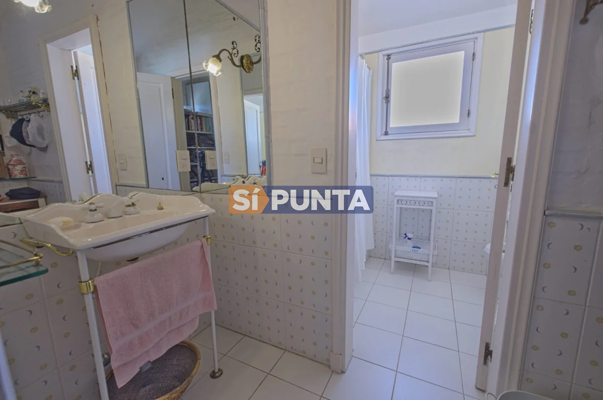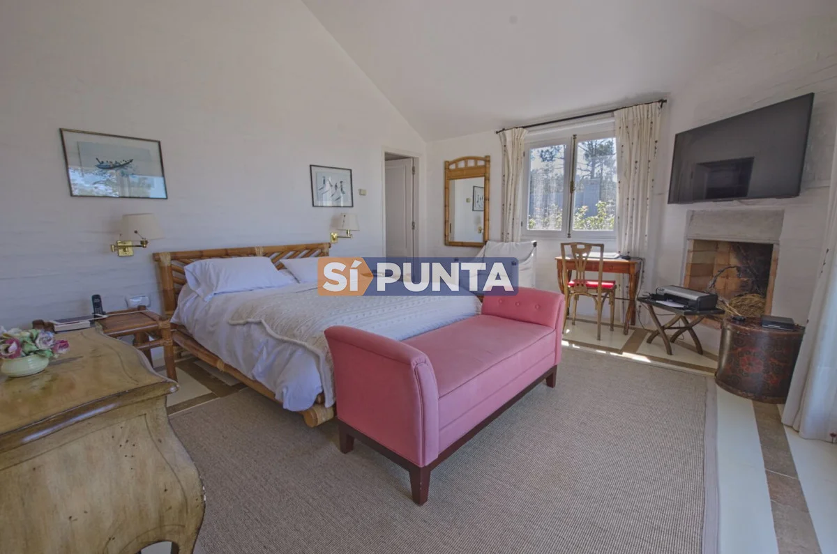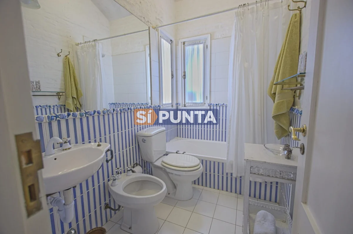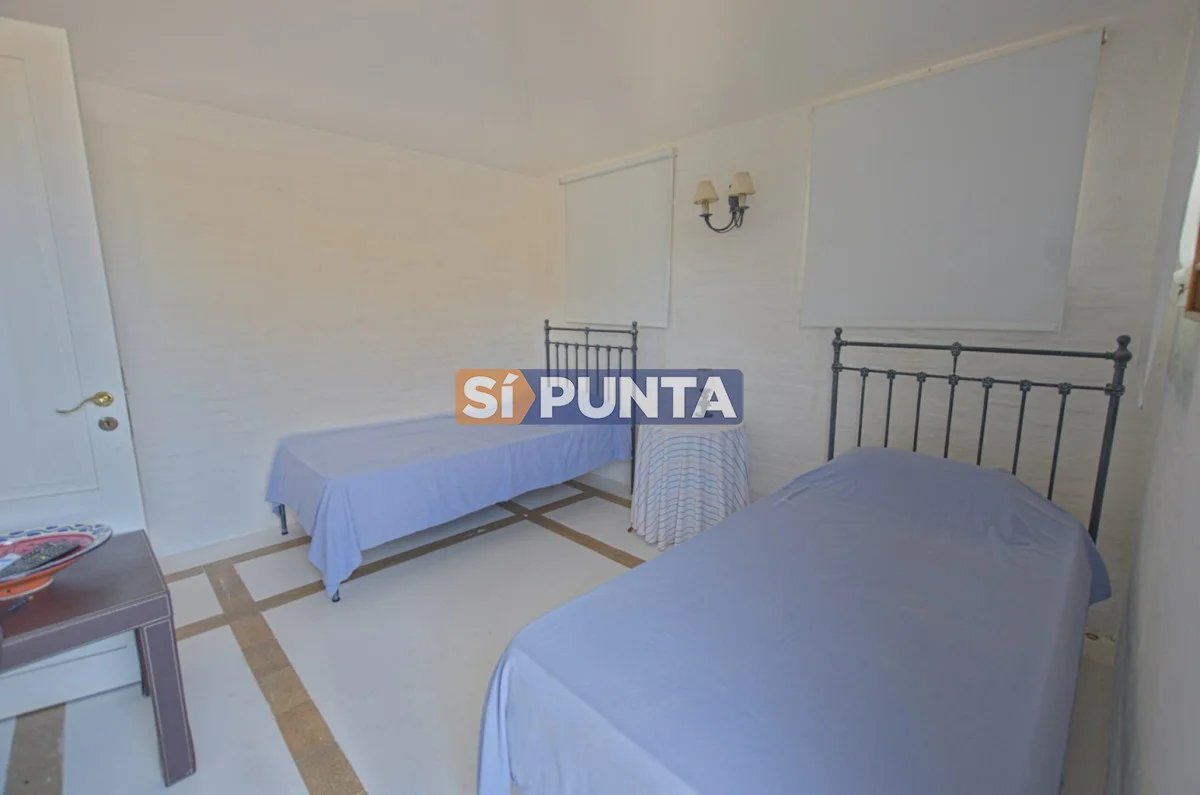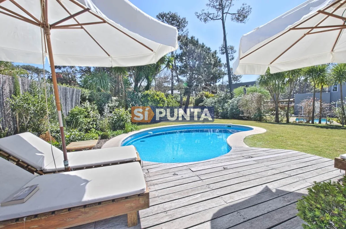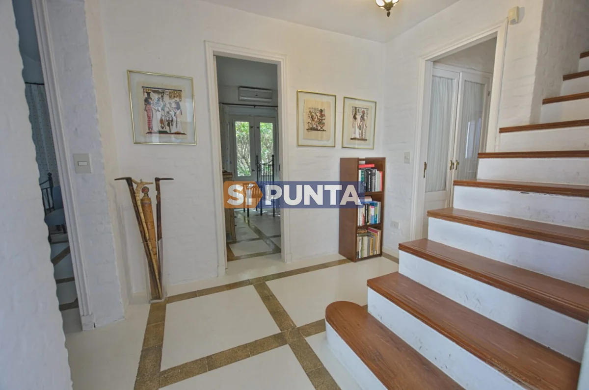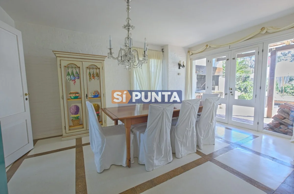 Excelente y elegante casa con vistas al mar. A solo 350 metros de la playa Montoya. De muy buena construcción y desarrollada en dos plantas. Comodidades: - Living - Aire acondicionado y losa radiante en todos los ambientes - Estufa a leña - Comedor - Cocina definida - 4 Dormitorios (2 suites) - 3 Baños - Dependencia de servicio independiente - Galería con vistas al mar - Galería techada con parrillero y horno de barro - Amplio y muy lindo jardín - Piscina - Cochera Referencia Interna : Tera-2918