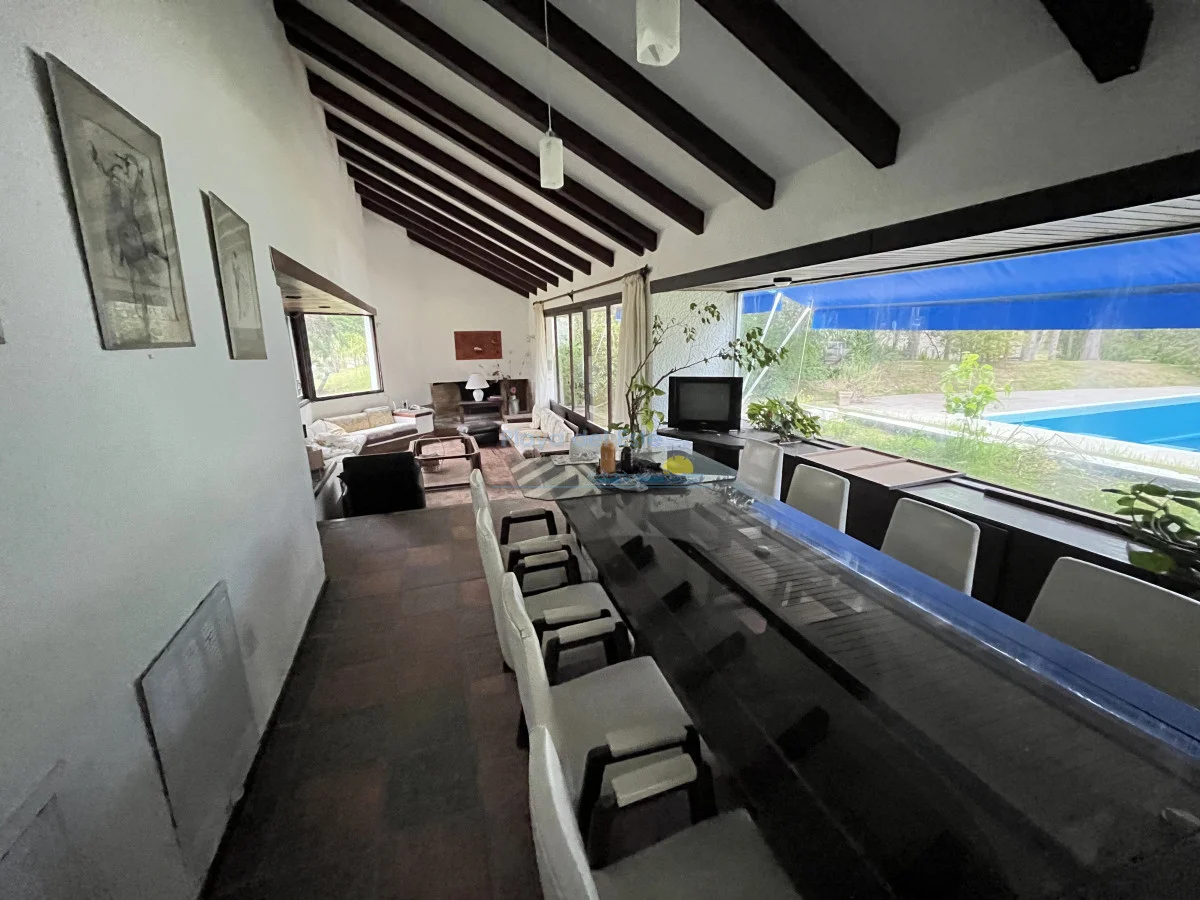 Amplia casa. Cuenta con 5 dormitorios, vestidores en 3 de ellos, placares en 2. 5 baños. Terreno de 1958 m2 y 210 m2 edificados. 30 m de frente x 65 m de fondo. Con piscina de 40 m2 (10x4) y parrillero Cancha de tenis de 400 m2 aprox Internet Alama ADT Amueblada con estufa a leña, 2 heladeras funcionando, horno y microondas. Sanitaria de entrada y salida actualizada. Sistema eléctrico actualizado. Alquiler por USD 2200, Garantía de aseguradora. Opción a venta o permuta. USD 740.000 Referencia Interna : Tera-14123