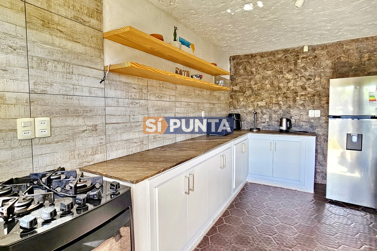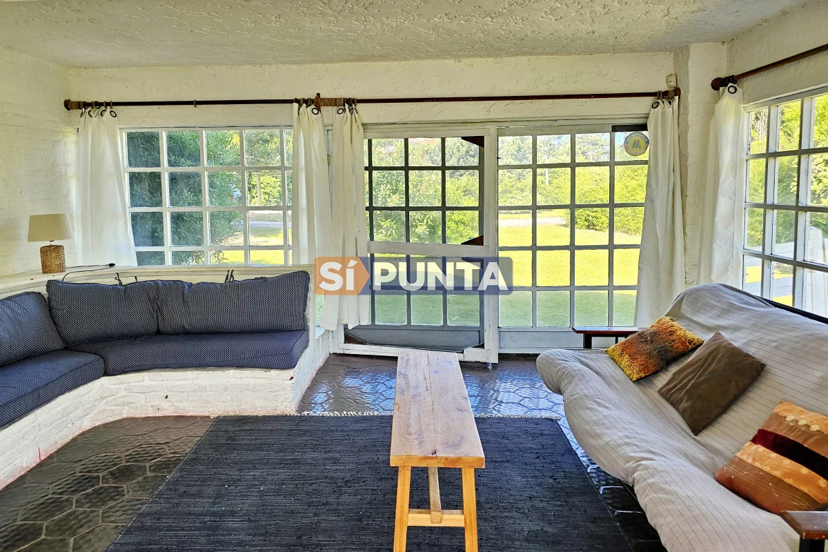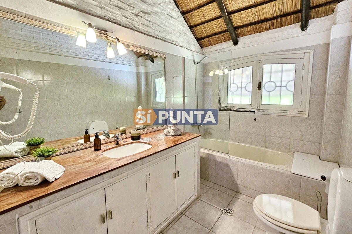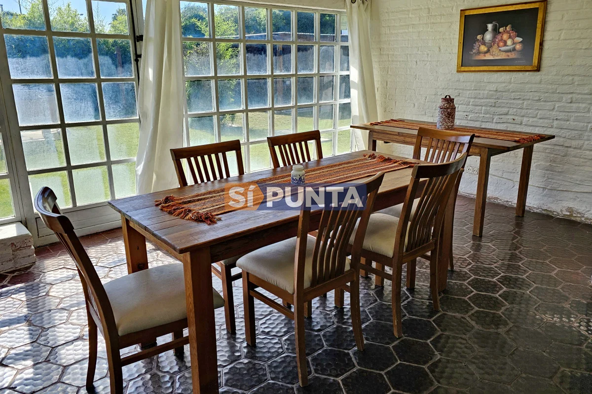 Gran casa con amplio jardín. Ubicada en Pinares - Punta del Este. Comodidades: - Living comedor - Estufa a leña - Playroom - Cocina - 5 Dormitorios - 3 Baños - Dependencia de servicio - Amplio jardín - Piscina - Parrillero techado Referencia Interna : Tera-3993