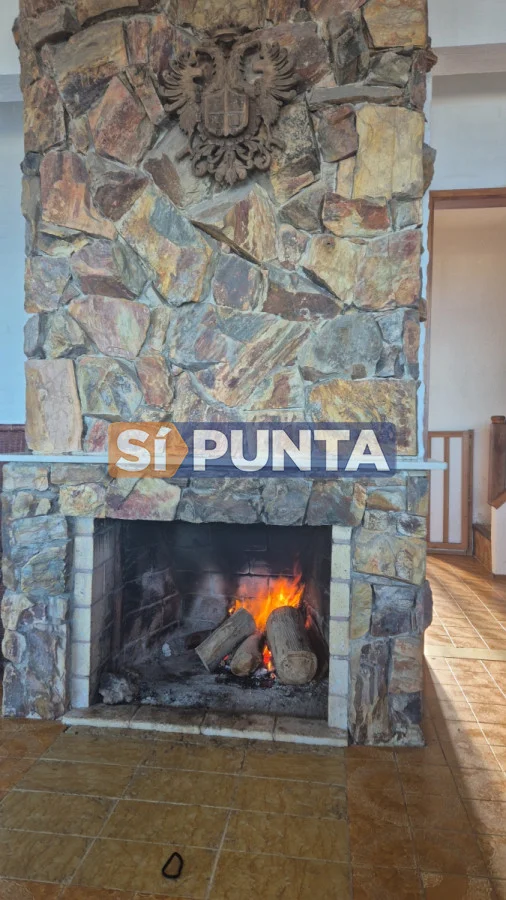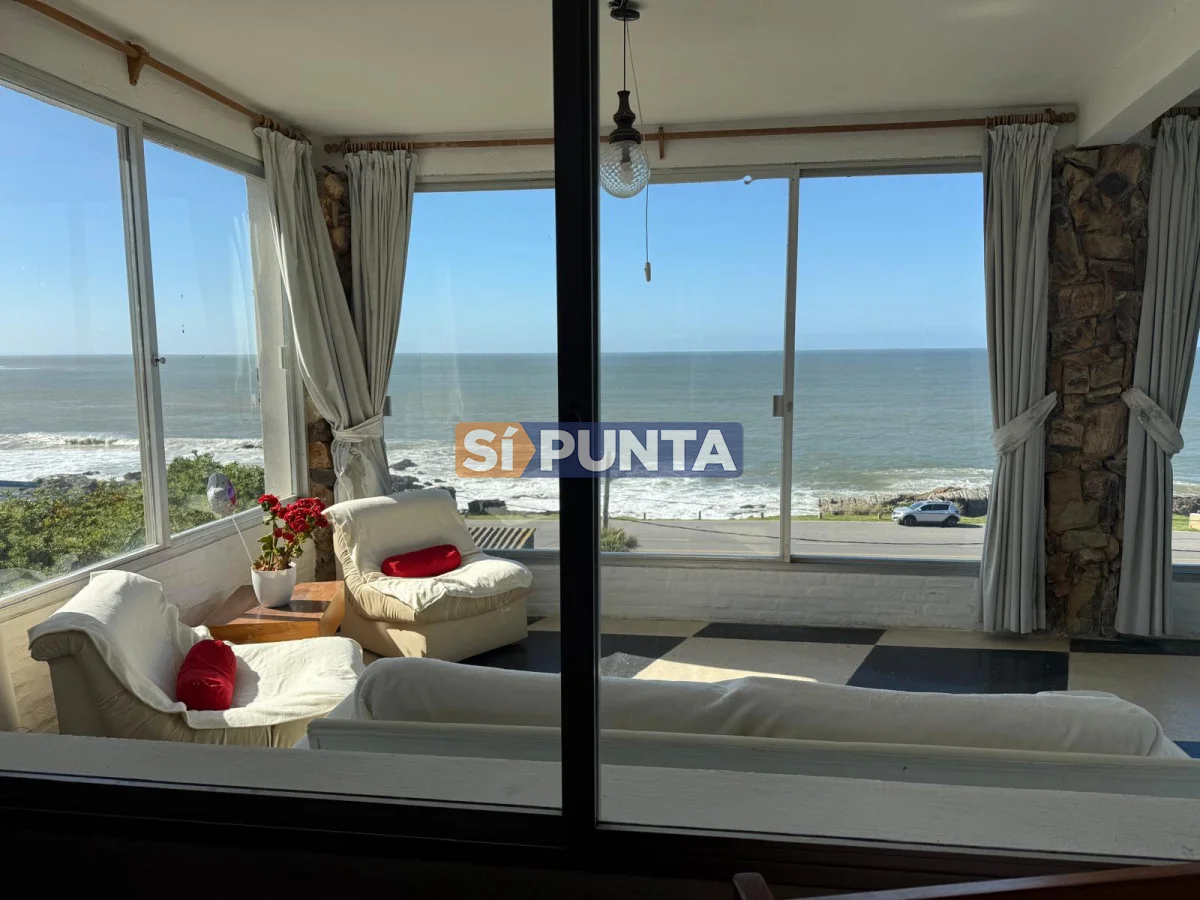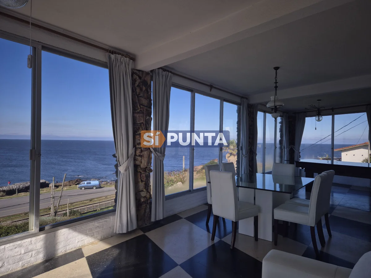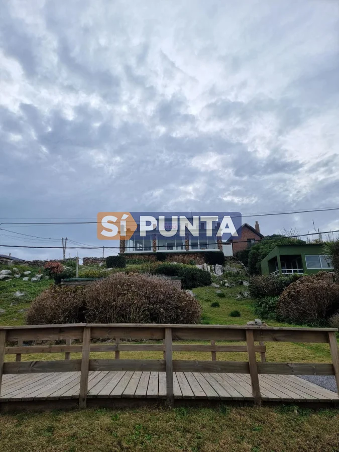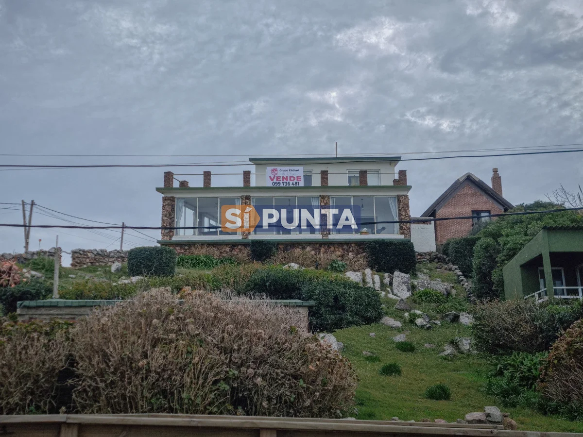 La casa, distribuida en dos plantas, fue diseñada para maximizar las vistas al mar. Su espacioso living cuenta con amplios ventanales que enmarcan una vista de 180 grados de toda la bahía, abarcando incluso Punta del Este. Complementan la planta baja un acogedor comedor con estufa a leña, una cocina bien definida y un baño completo. En el nivel superior se encuentran los tres dormitorios y un baño completo, recientemente renovado. Un punto destacado es su generosa terraza en forma de L, ideal para disfrutar del paisaje sin interrupciones.