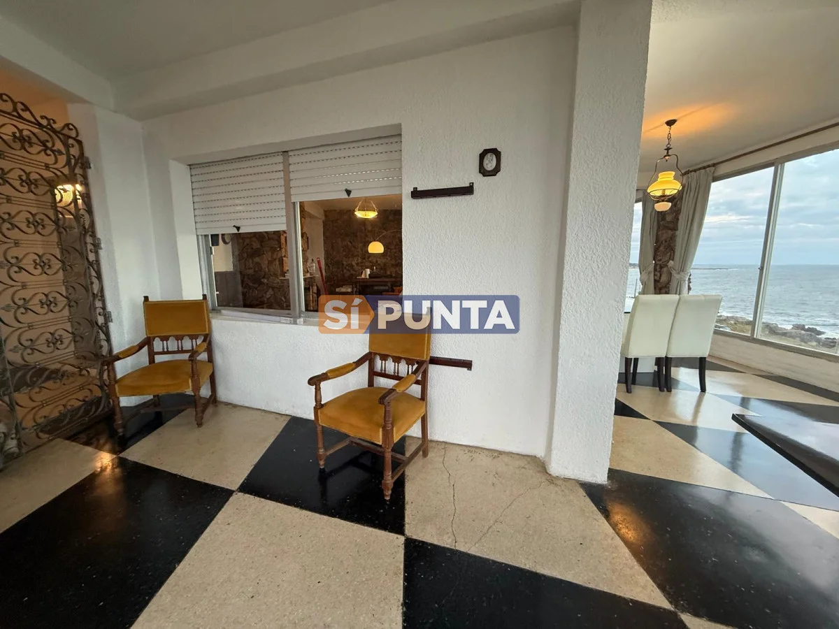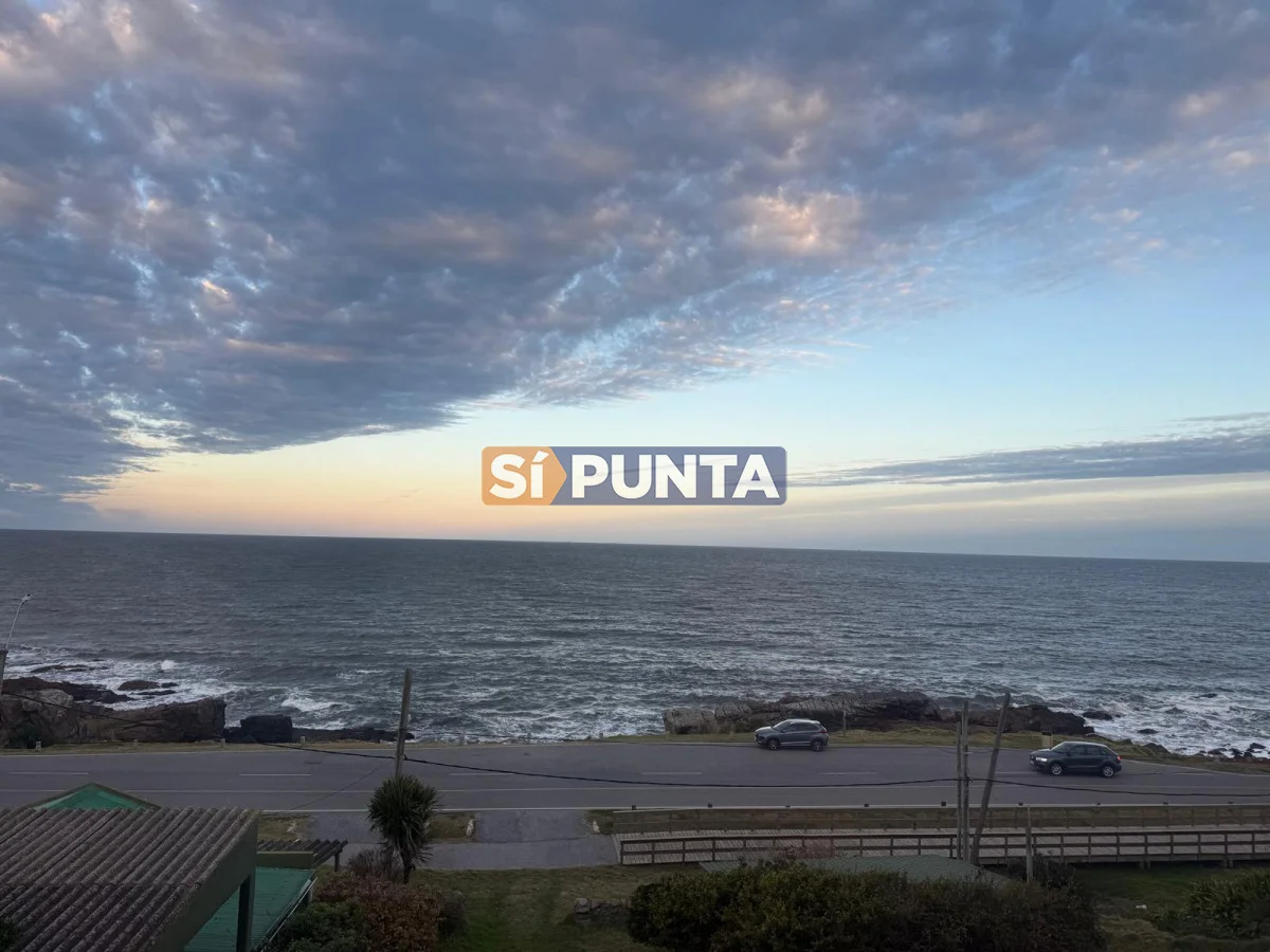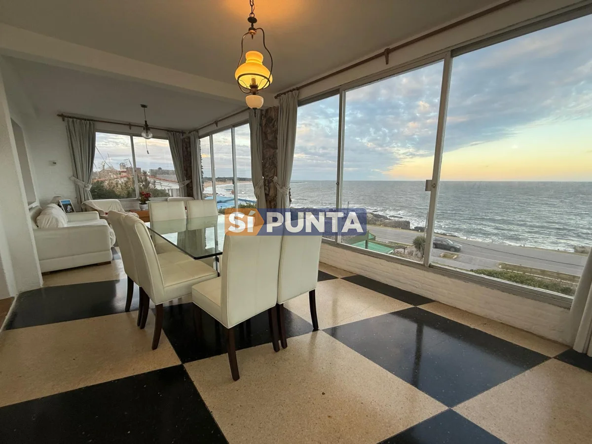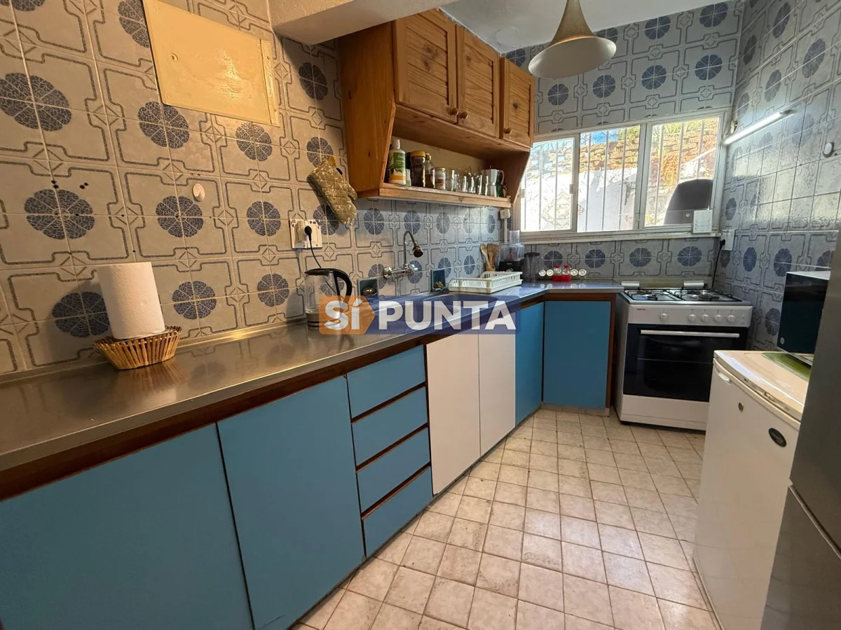 La casa, distribuida en dos plantas, fue diseñada para maximizar las vistas al mar. Su espacioso living cuenta con amplios ventanales que enmarcan una vista de 180 grados de toda la bahía, abarcando incluso Punta del Este. Complementan la planta baja un acogedor comedor con estufa a leña, una cocina bien definida y un baño completo. En el nivel superior se encuentran los tres dormitorios y un baño completo, recientemente renovado. Un punto destacado es su generosa terraza en forma de L, ideal para disfrutar del paisaje sin interrupciones.