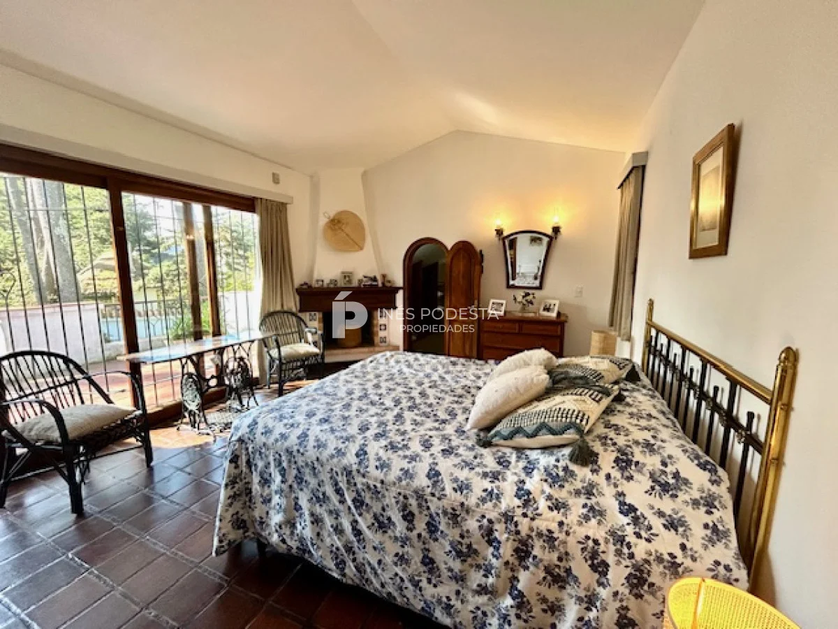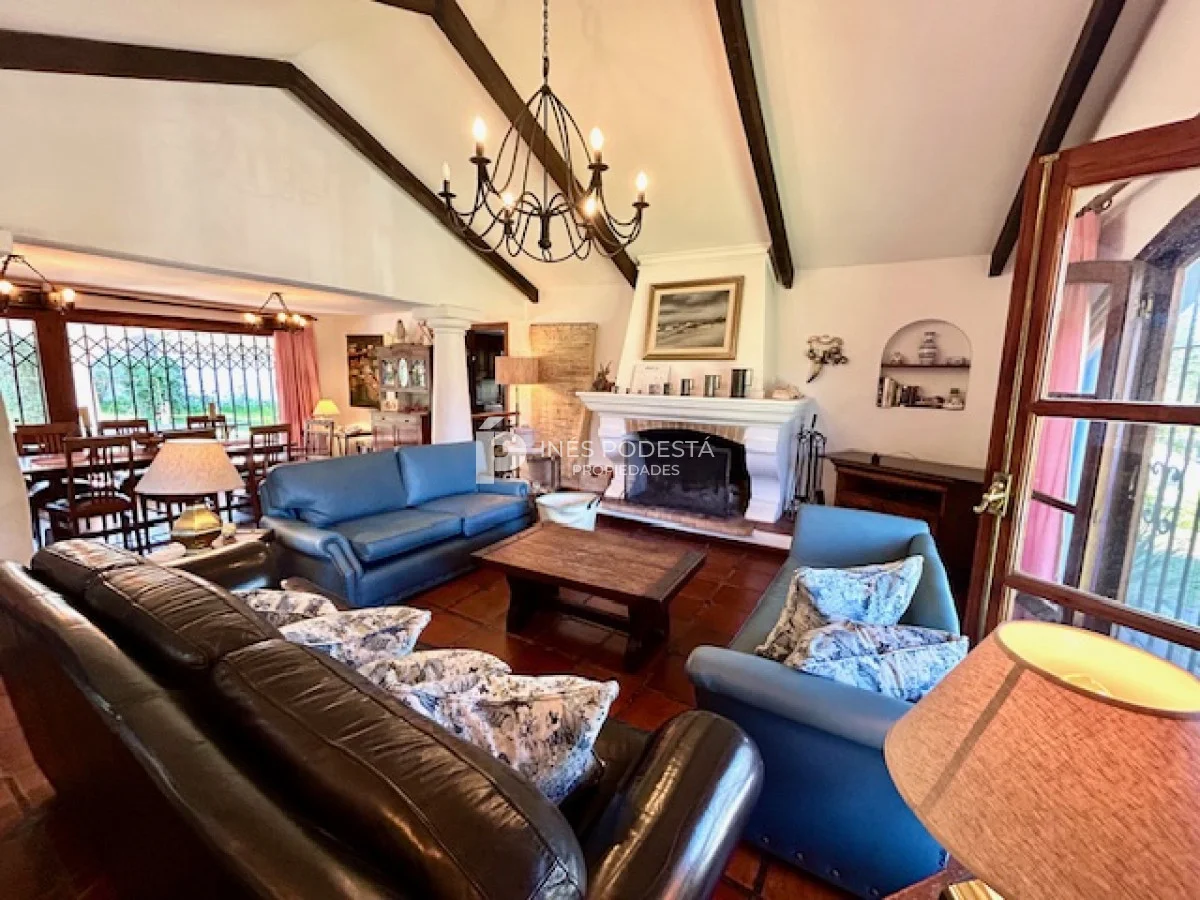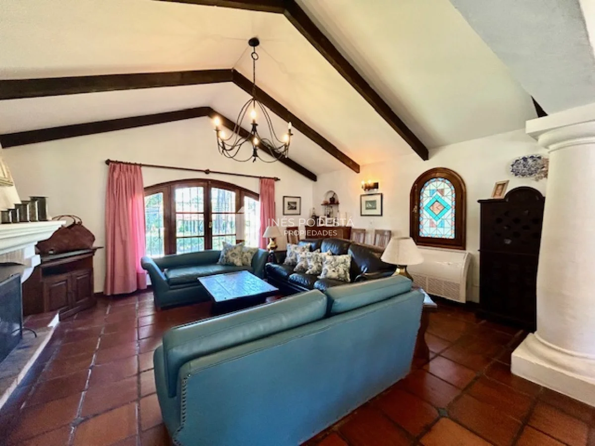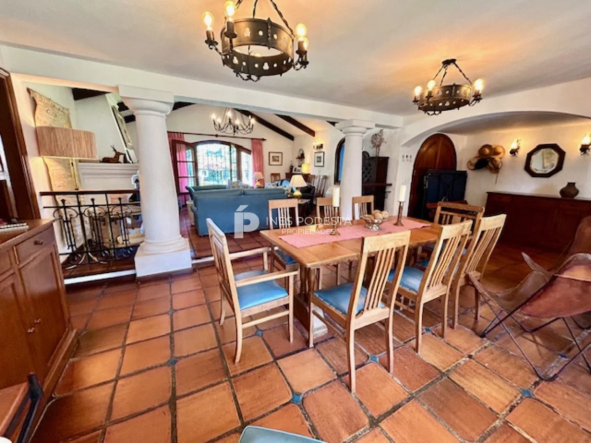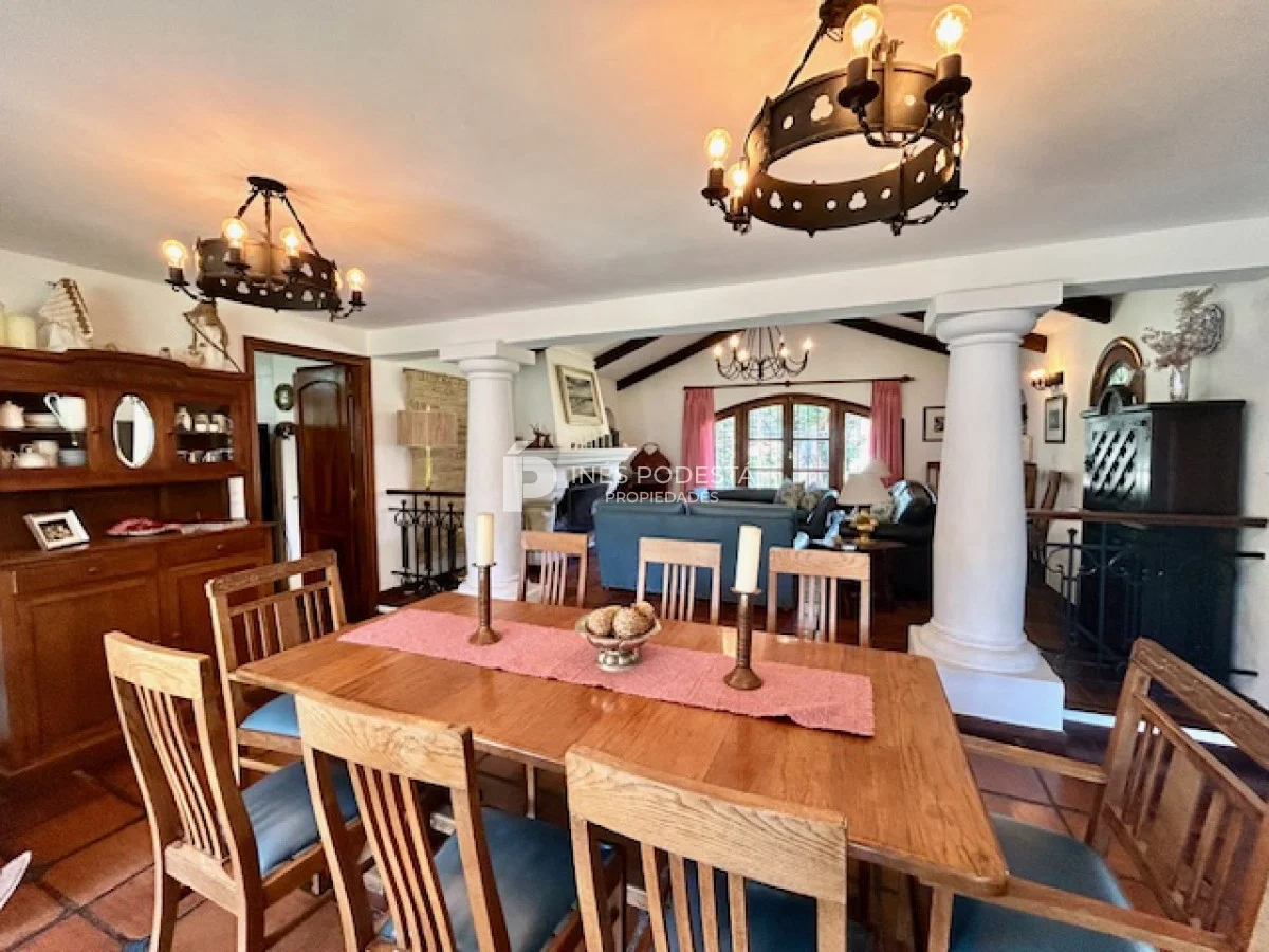 Muy buena propiedad estilo colonial, implantada en un lote de 1000 m2 y sólida construcción. Amplio living y comedor con estufa a leña, muy buena carpintería, ventanales hacia el jardín, cocina con office, toilette, 4 dormitorios (2 en suite). El principal en planta alta con estufa a leña y de grandes dimensiones con gran vestidor. Cuenta con dependencia de servicio, gran terraza atrás con parrillero, cochera, estacionamiento para autos.