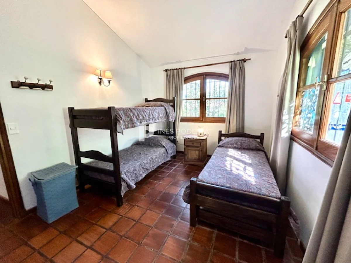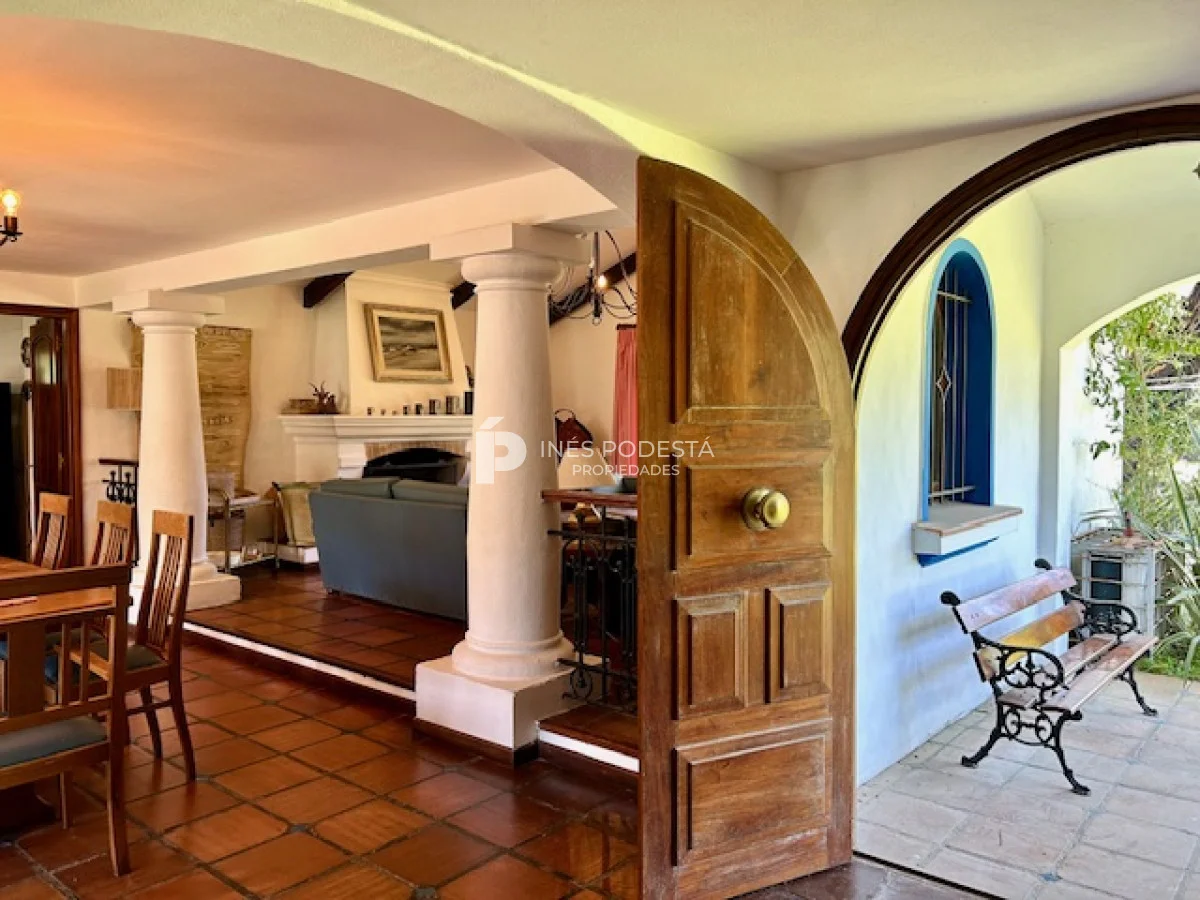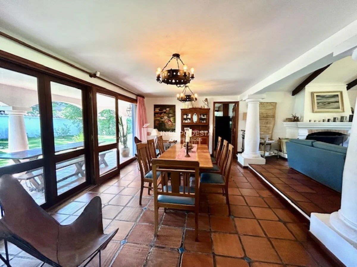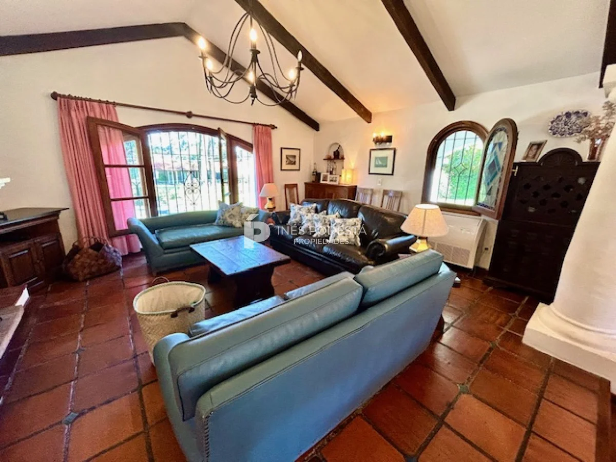 Muy buena propiedad estilo colonial, implantada en un lote de 1000 m2 y sólida construcción. Amplio living y comedor con estufa a leña, muy buena carpintería, ventanales hacia el jardín, cocina con office, toilette, 4 dormitorios (2 en suite). El principal en planta alta con estufa a leña y de grandes dimensiones con gran vestidor. Cuenta con dependencia de servicio, gran terraza atrás con parrillero, cochera, estacionamiento para autos.