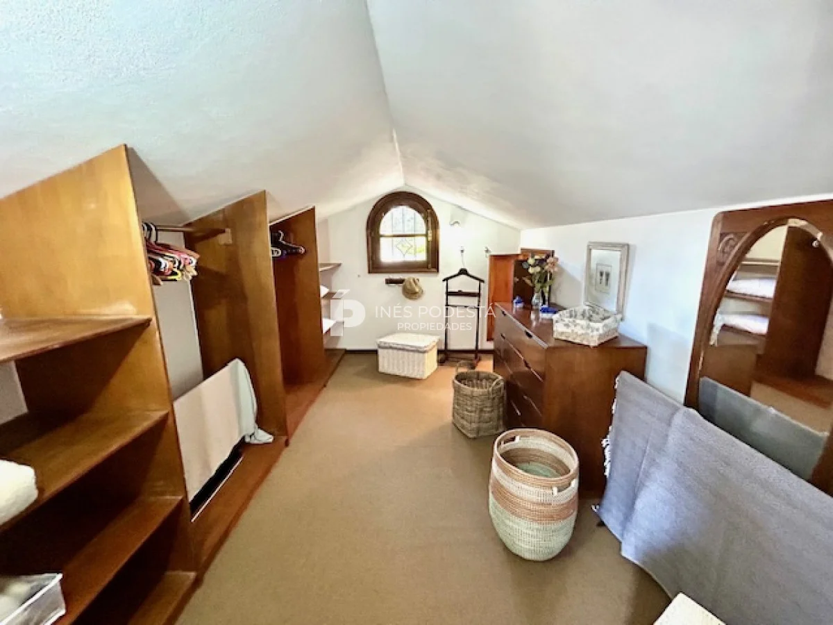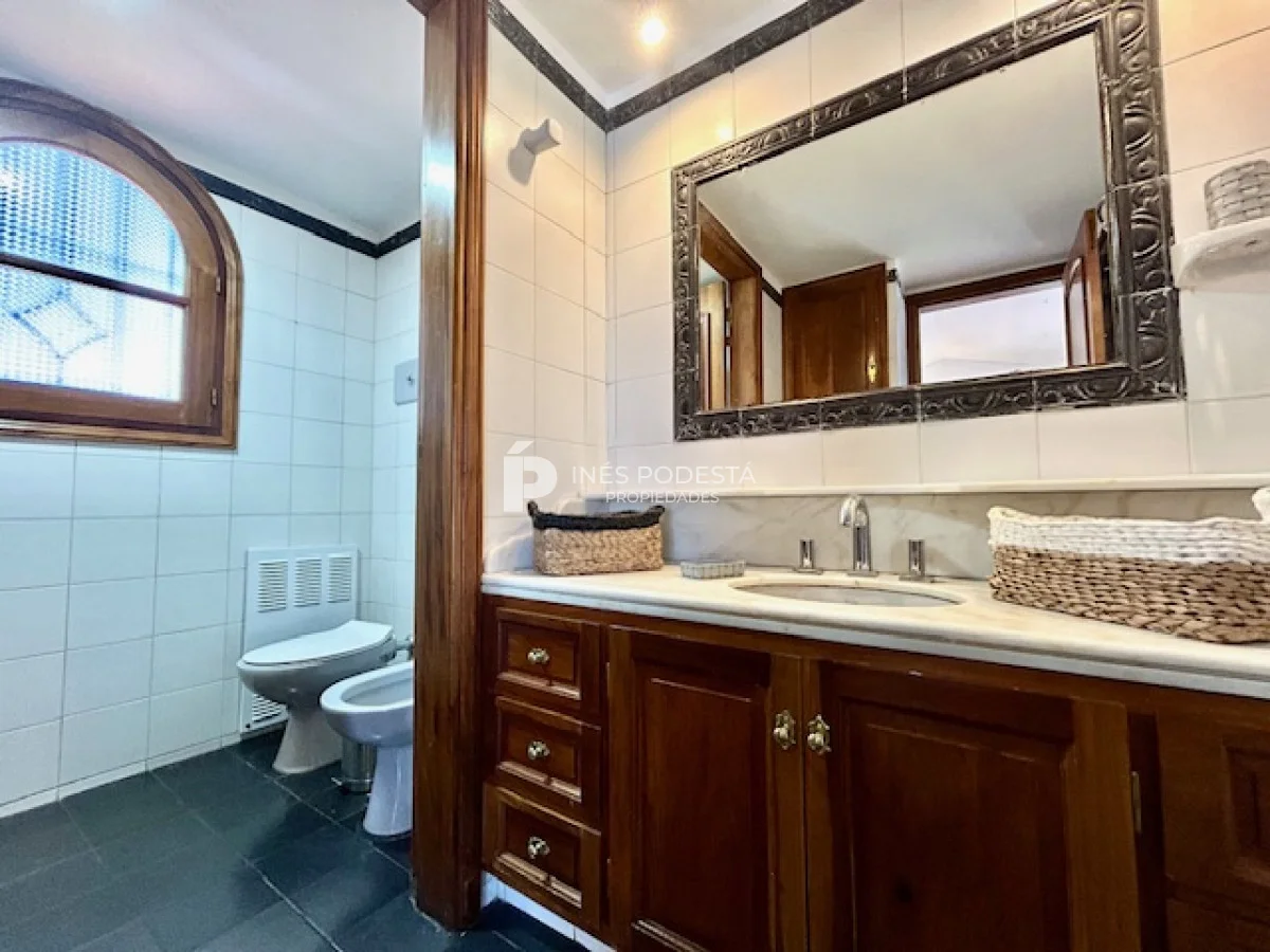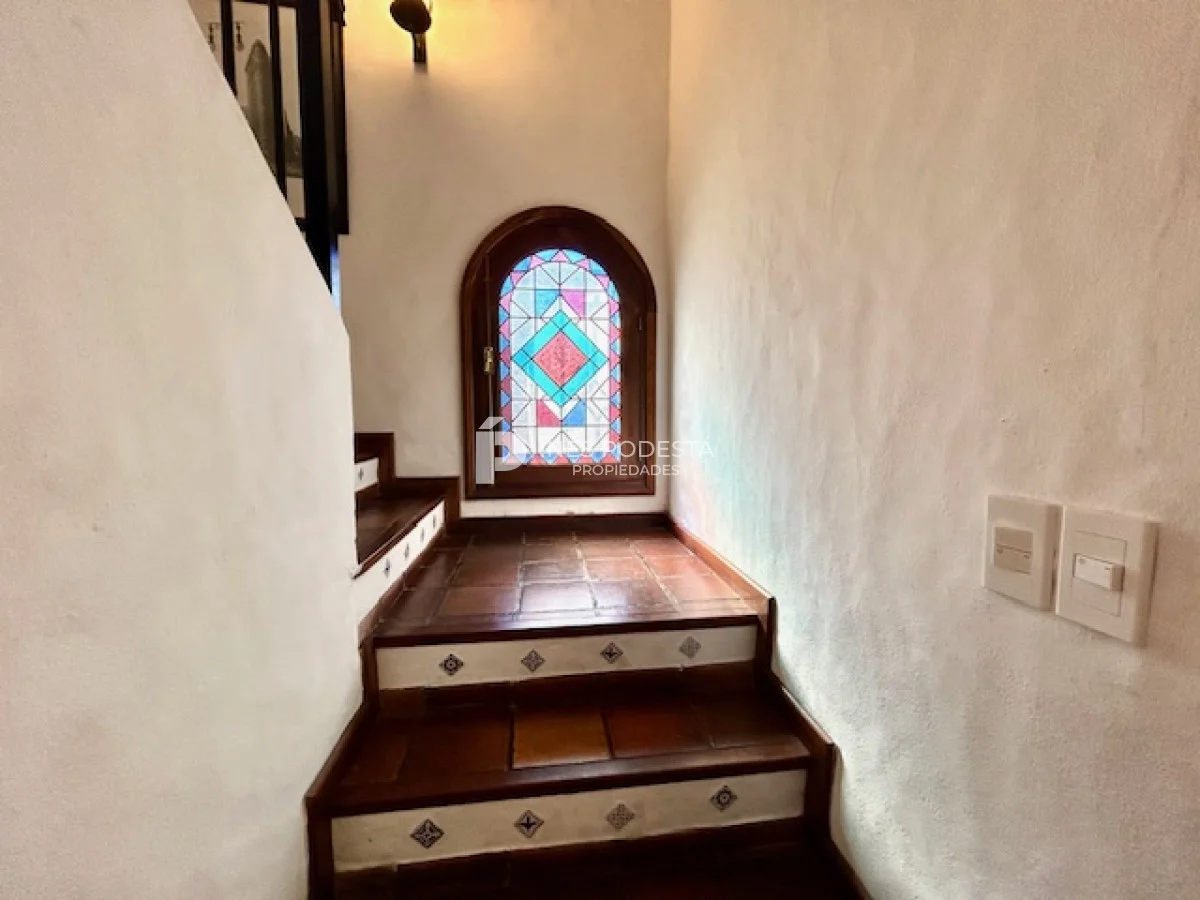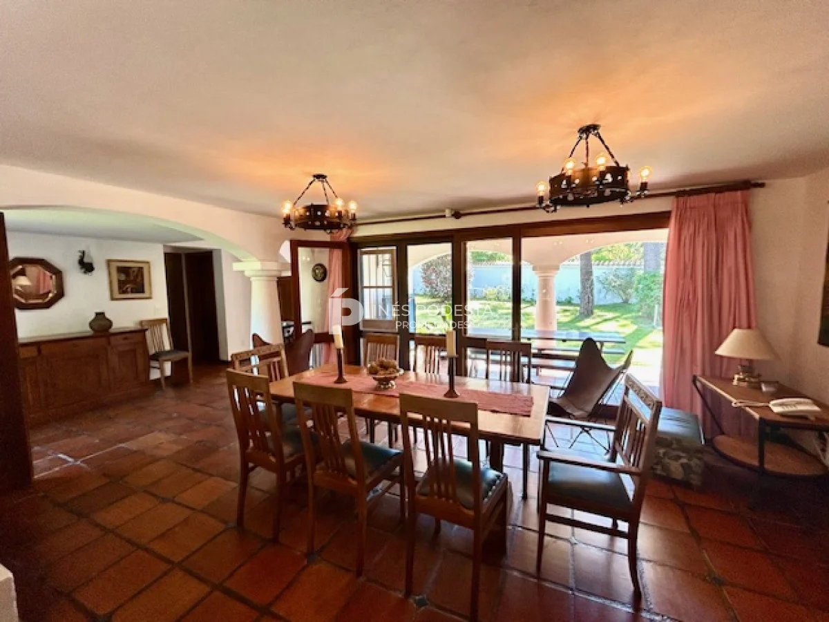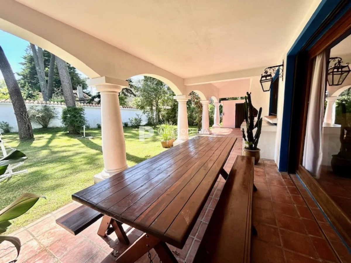 Muy buena propiedad estilo colonial, implantada en un lote de 1000 m2 y sólida construcción. Amplio living y comedor con estufa a leña, muy buena carpintería, ventanales hacia el jardín, cocina con office, toilette, 4 dormitorios (2 en suite). El principal en planta alta con estufa a leña y de grandes dimensiones con gran vestidor. Cuenta con dependencia de servicio, gran terraza atrás con parrillero, cochera, estacionamiento para autos.