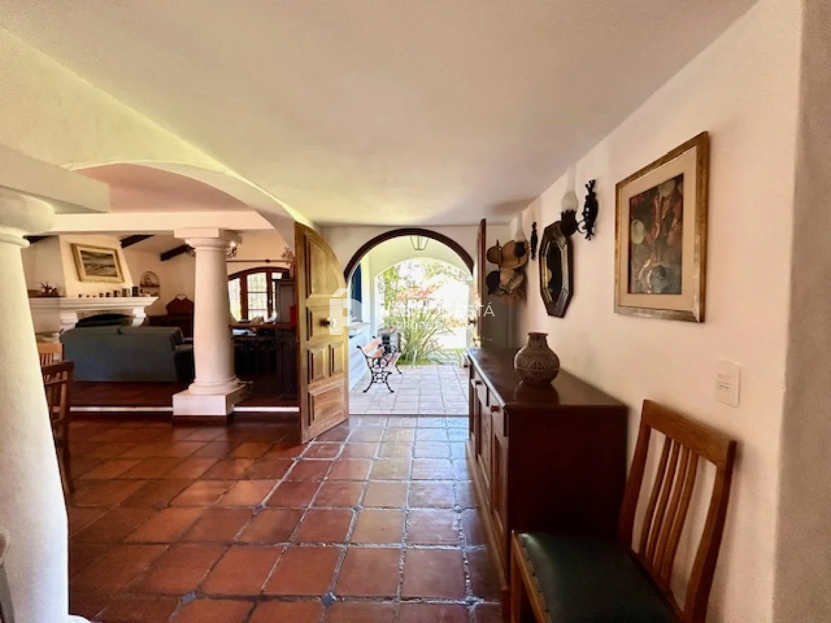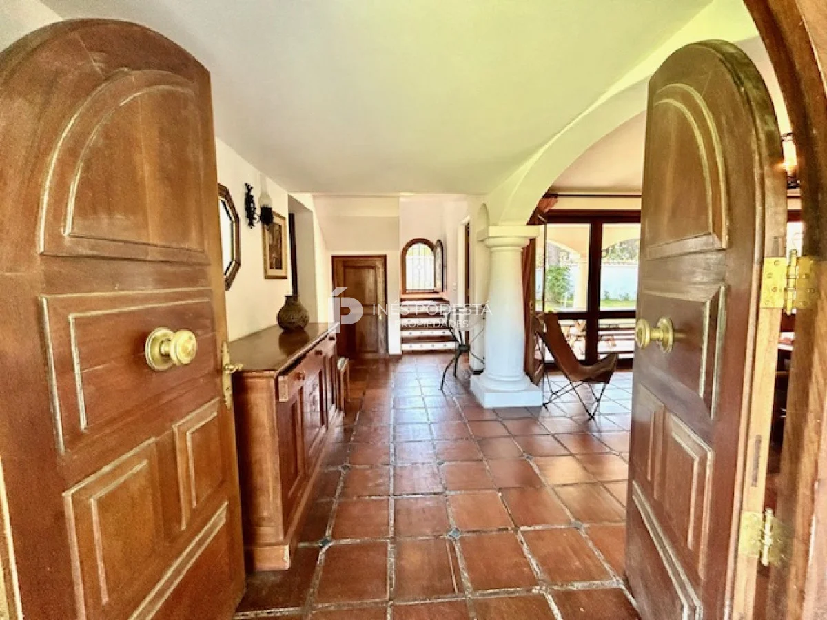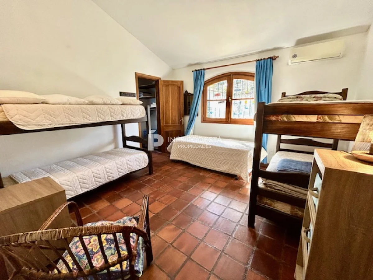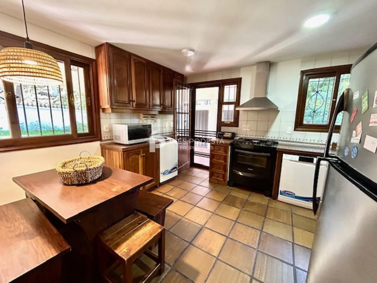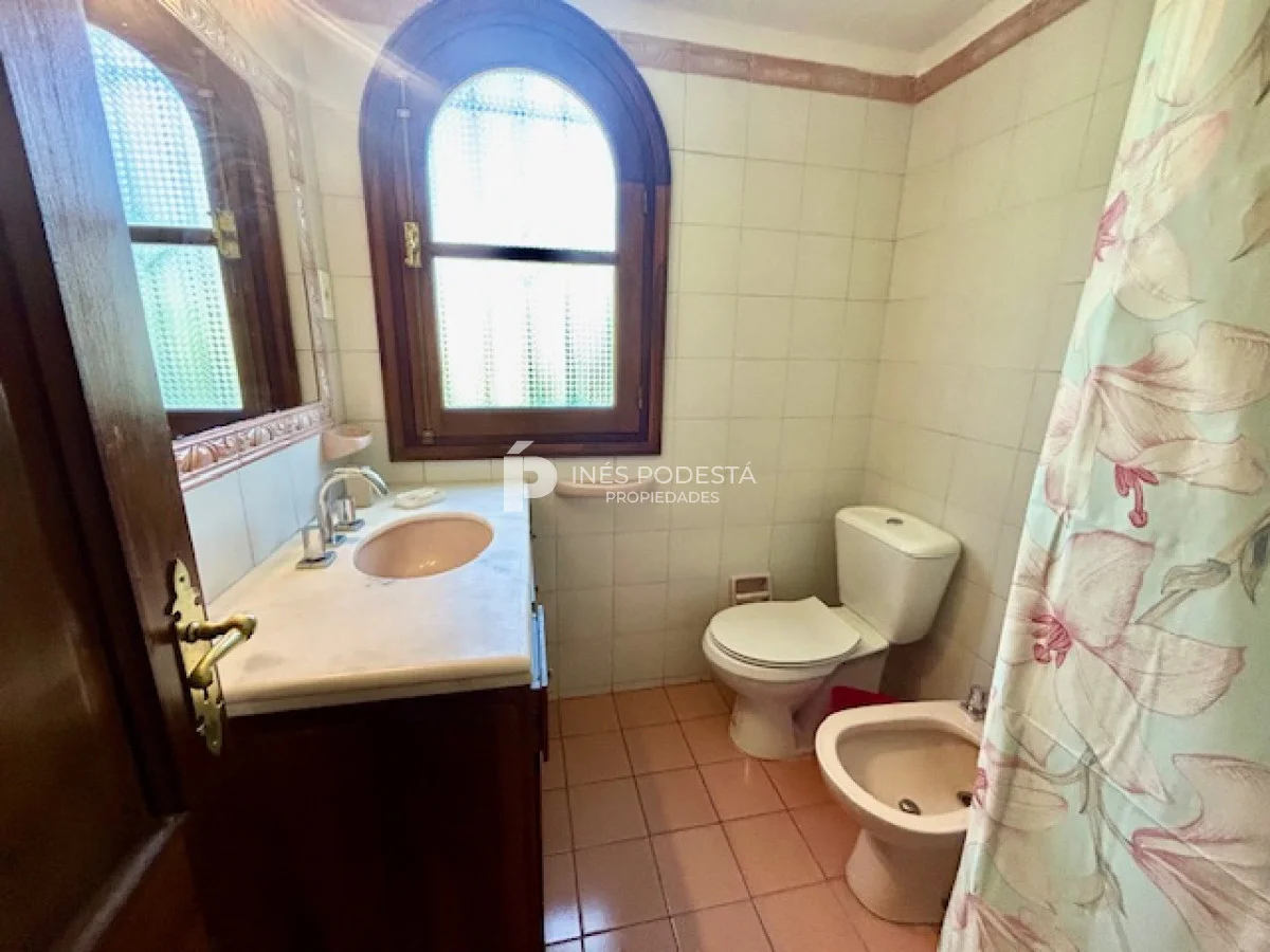 Muy buena propiedad estilo colonial, implantada en un lote de 1000 m2 y sólida construcción. Amplio living y comedor con estufa a leña, muy buena carpintería, ventanales hacia el jardín, cocina con office, toilette, 4 dormitorios (2 en suite). El principal en planta alta con estufa a leña y de grandes dimensiones con gran vestidor. Cuenta con dependencia de servicio, gran terraza atrás con parrillero, cochera, estacionamiento para autos.