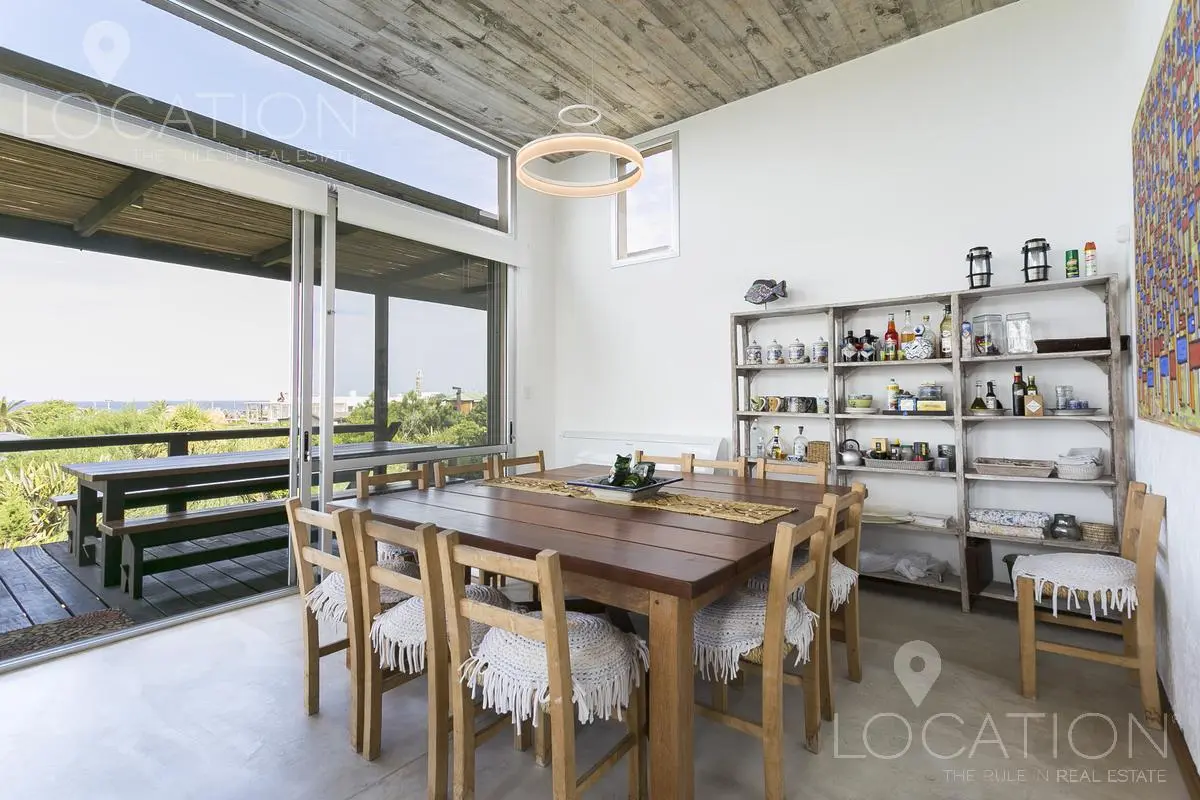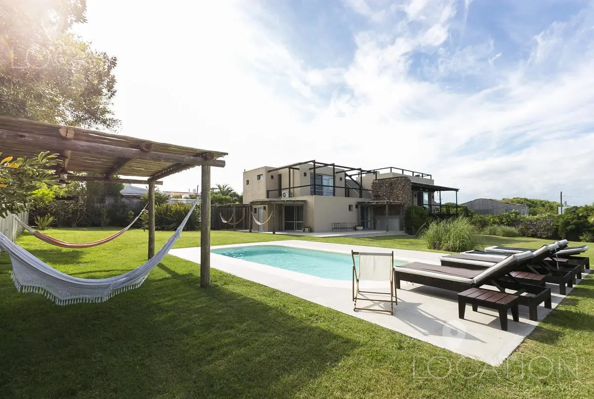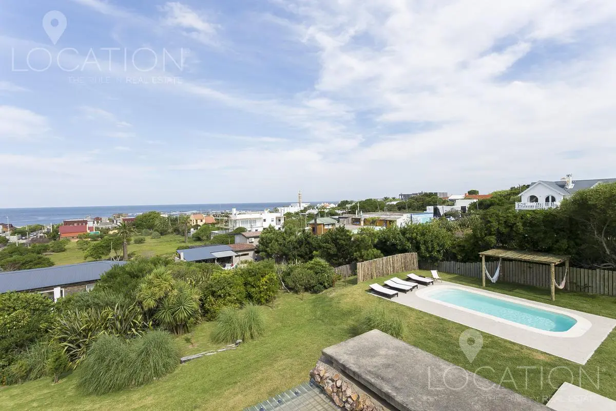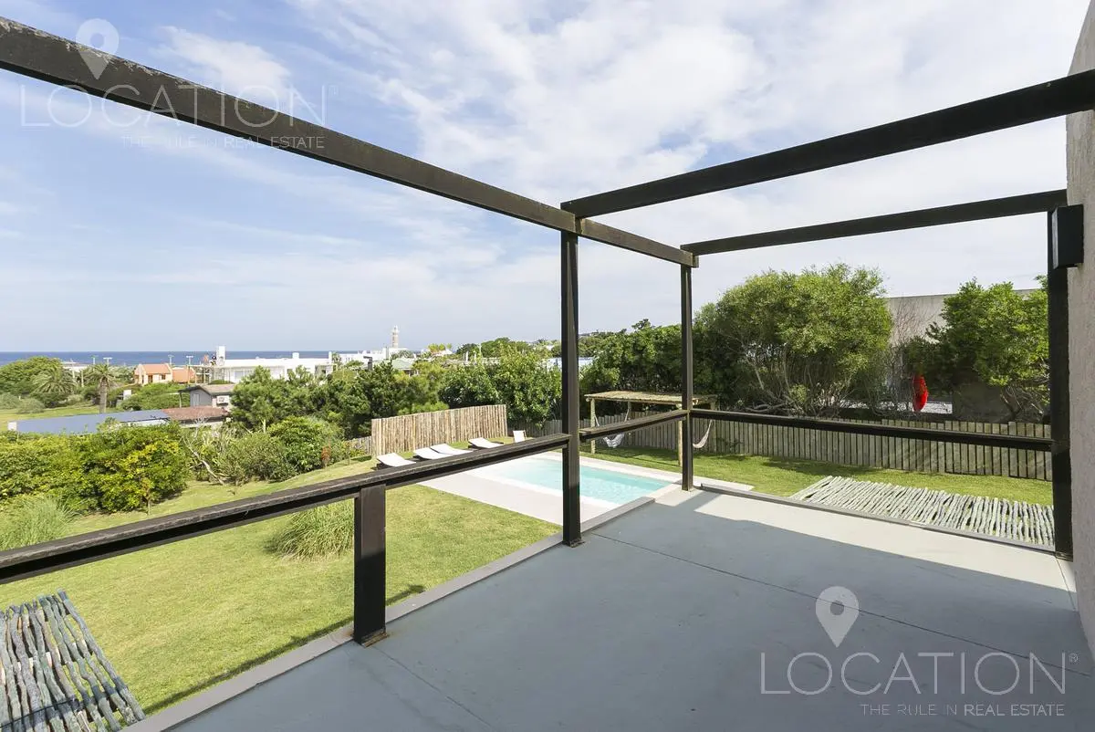Espectacular y moderna propiedad en el pueblo de José Ignacio, a metros del mar. Sobre dos lotes de 1.620 mts, se desarrolla esta increíble casa de mas de 400 mts construidos. Comodidades, 4 dormitorios en suite, amplio living comedor que integra una gran terraza con vista al mar y al faro. Toilette, playroom, cocina definida, lavadero + dependencia de servicio, deck con parrillero, y pileta climatizada.