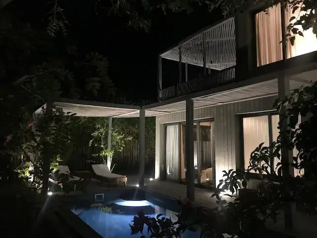 Por fuera encontramos las piscinas de las casas, con reposeras y otra parrilla para mayor comodidad.