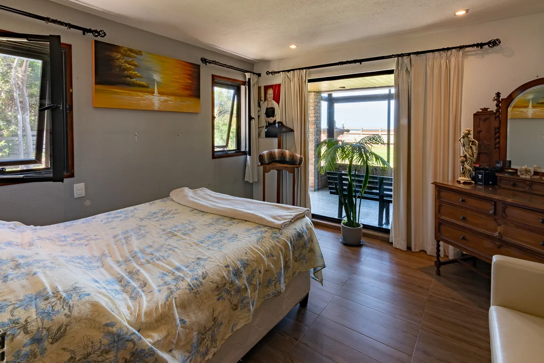 CASA BELLA VISTA MALDONADO BLAMIMAR CA500958 En el balneario Bella Vista frente al mar, a solo unos minutos de Piriápolis ubicamos la siguiente propiedad de gran porte de solida construcción tradicional sobre u terreno de 2389mts². En su interior se encuentra living comedor en desnivel con estufa a leña, mediante puerta en madera de buena calidad da paso amplio y luminoso living con vistas al mar, desde donde se puede acceder a una lujosa cocina con mesada e isla de mármol negro, muebles aéreos y bajo mesada en madera. Por pasillo de distribución ubicamos baño completo, tres dormitorios, uno de ellos siendo el principal, cuenta con vestidor, baño en suite y vista al mar. En la parte trasera de la casa se desarrolla una gran y luminosa barbacoa con todas las comodidades, incluyendo parrillero, cocina y horno a leña, baño y cuarto de servicio desde ahí se puede acceder a un espacioso garaje y una piscina climatizada y techada con baño completo. Por último, en el exterior de la propiedad, se encuentra un gran parque cercado, con tajamar brindándole un entorno natural siendo perfecto para el disfrute y actividades al aire libre.