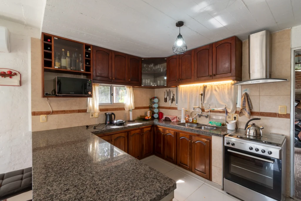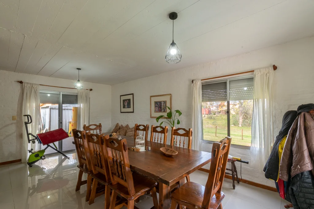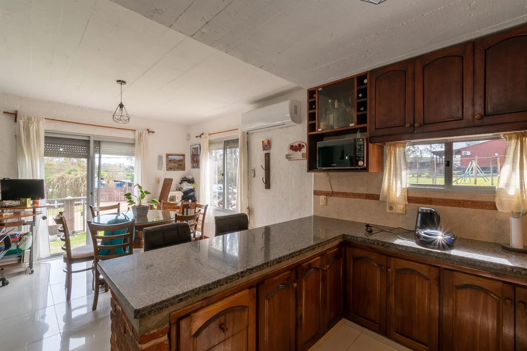 CASA PLAYA HERMOSA MALDONADO TIO NEGRO CA501280 Propiedad ubicada en el balneario playa hermosa a menos de dos cuadras de ruta 10 en un entorno tranquilo con vecinos todo el año. La misma se desarrolla en construcción tradicional de ladrillo en dos plantas con aberturas en aluminio, en el interior living comedor en desnivel con cocina integrada por barra desayunadora con muebles aéreos y bajo mesada en madera y mesada en granito, por comoda escalera con descanso nos encontramos 4 dormitorios, uno de ellos con salida a balcón y el principal con balo en suite y un baño completo. En el exterior predio totalmente cercado con entrada para vehículo, mientras que en el fondo espacio verde y parrillero techado perfecto para compartir momentos en familia.
