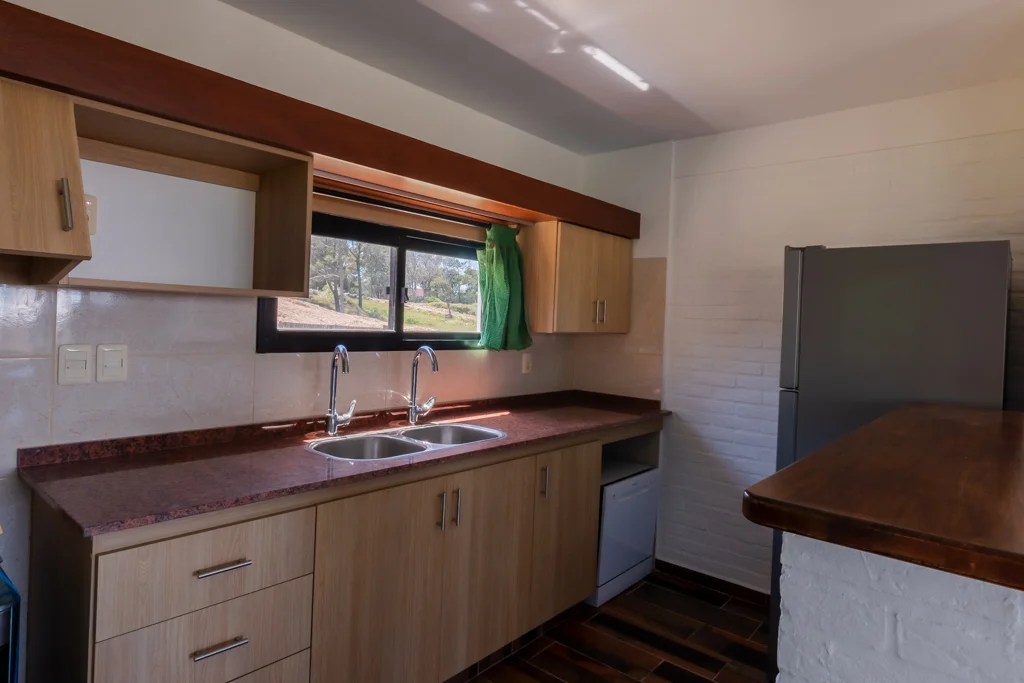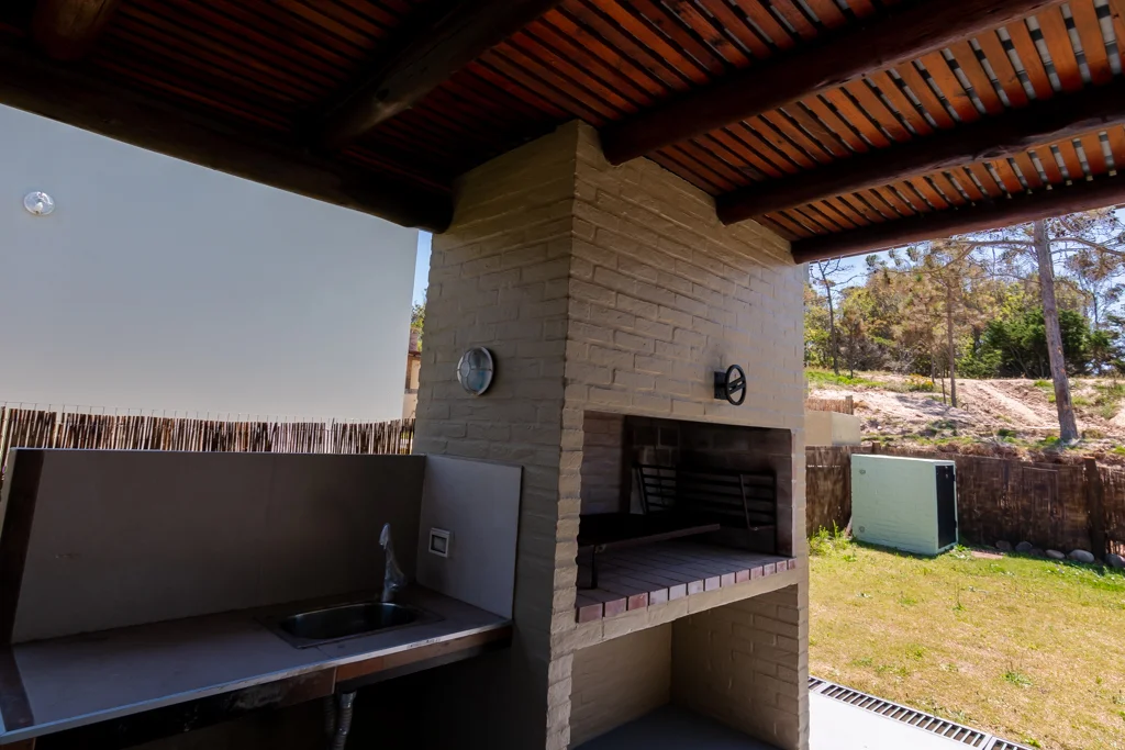 CASA PUNTA COLORADA MALDONADO FERME ET MER CA201569  A menos de 200mts del mar, en la zona de Punta Colorada, ubicamos esta casa la cual se desarrolla en régimen de propiedad horizontal, con entrada independiente y un desarrollo constructivo de estilo tradicional y contemporáneo en muros de ladrillo con detalles en piedra y madera, pisos en porcelanato, aberturas en aluminio con persianas de enrollar, techo de planchada, construida en un solo nivel, la misma se distribuye de la siguiente manera.