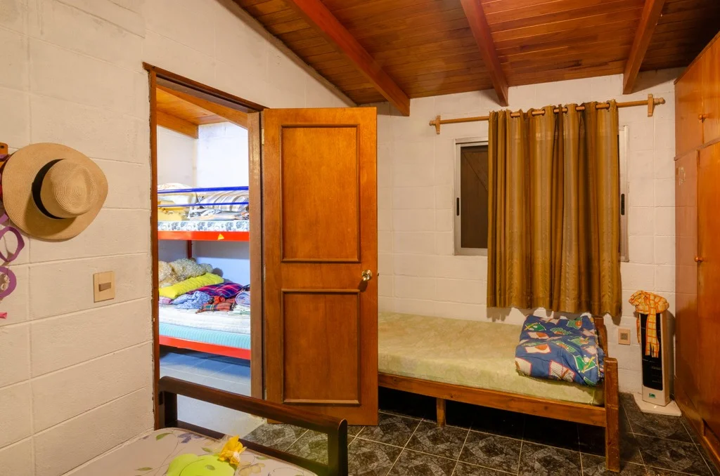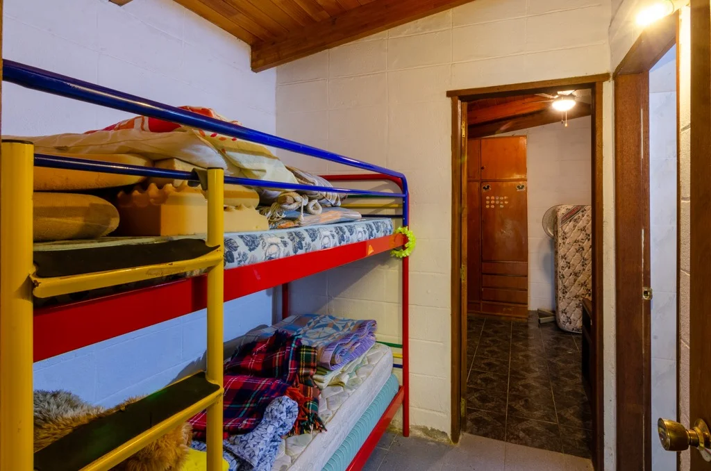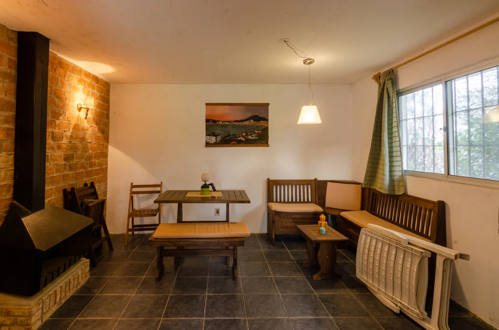 La vivienda se desarrolla en dos plantas y distribuye en planta baja con living con estufa a leña, cocina-comedor, un dormitorio y baño completo. Mediante escalera con descanso se accede a la planta alta donde se encuentra el dormitorio principal con baño en suite.