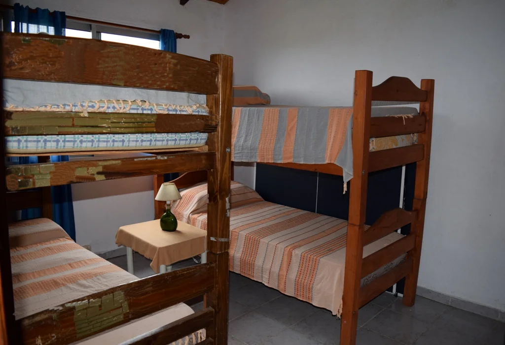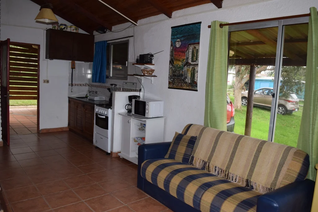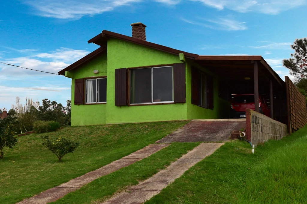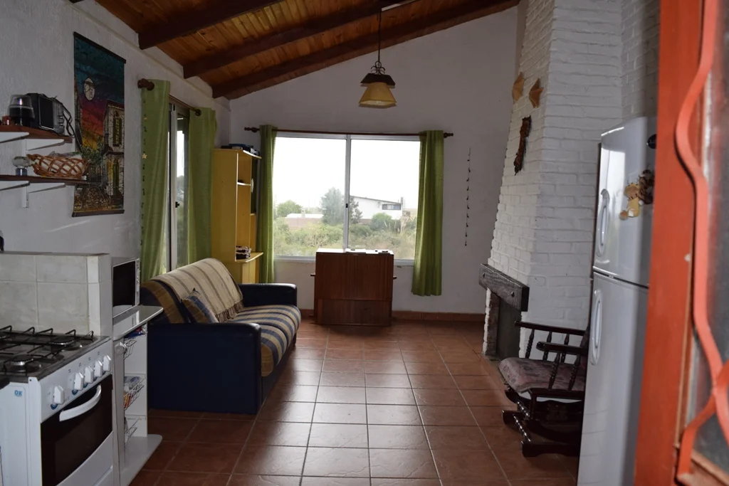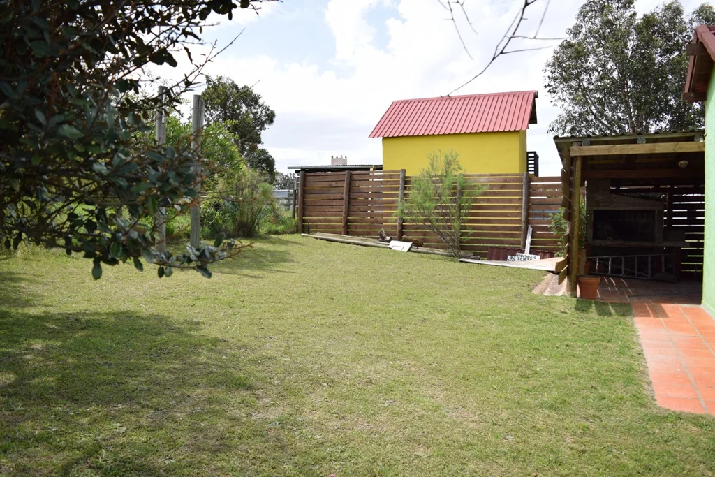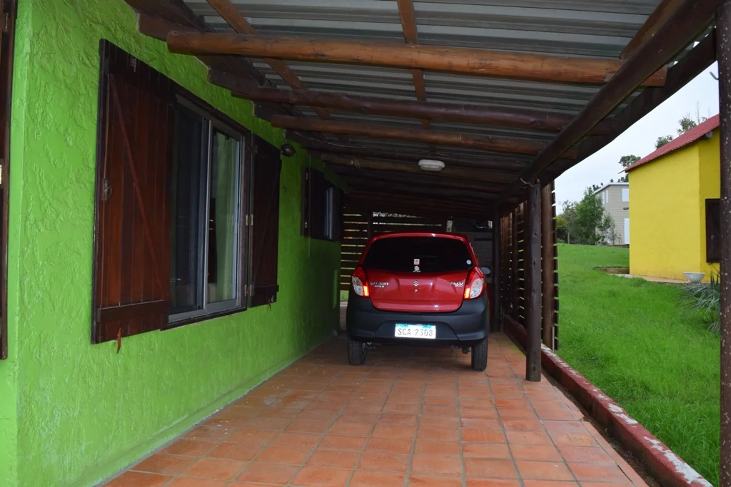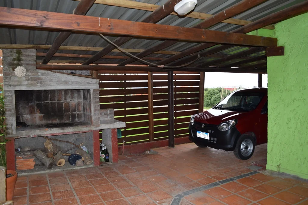 Construcción con pared simple de ladrillos, techo liviano de chapa teja con lambriz de madera y tirantería en curupay. Cuenta con living con estufa a leña y cocina integrada, dos dormitorios y baño. Además de cochera techada para dos autos y parrillero.