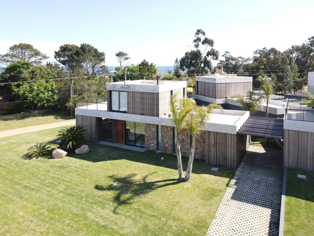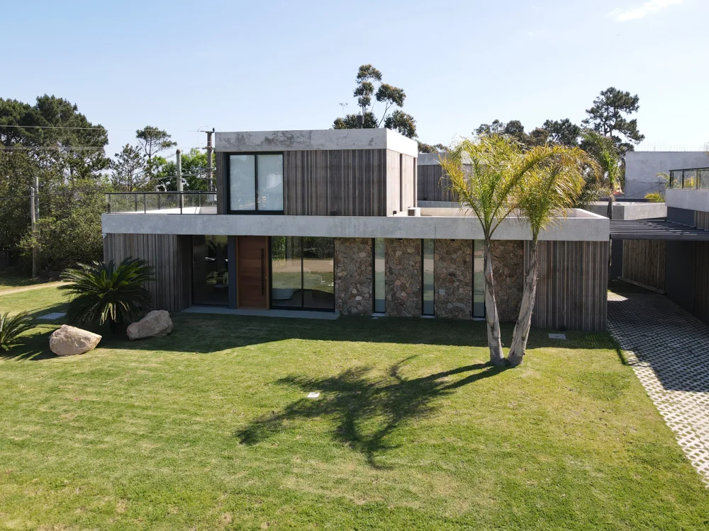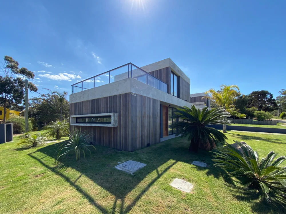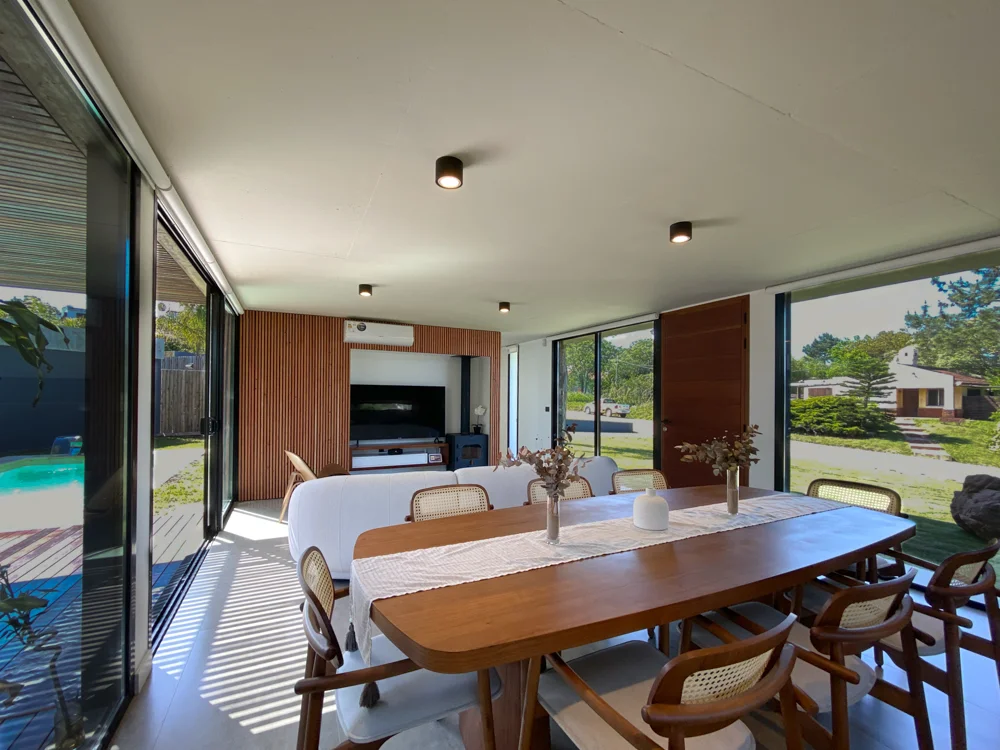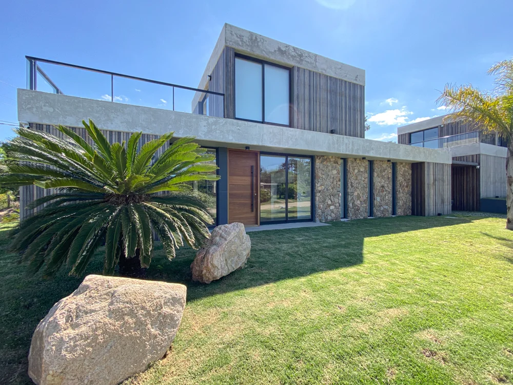 CASA SAN FRANCISCO MALDONADO CA501335 En pleno balneario San Francisco, a menos 100mts de la mejor bajada a la playa del lugar, siendo este caracterizado por su hermosa costa y con edificaciones de mediano y gran porte se desarrolla la siguiente moderna propiedad de construcción tradicional en ticholo, aberturas en DVH y detalles en madera de excelente calidad. En el interior ubicamos luminoso living comedor con cocina integrada con electrodomésticos empotrados, muebles aéreos y bajo mesada, en planta baja dos dormitorios y un baño completo mientras que por cómoda escalera iluminada accedemos al dormitorio principal con baño en suite que al igual que el de planta baja cuenta con mampara en aluminio negro y cristal de techo a piso y balcón con vista parcial a la costa. En el exterior, frente ajardinado con entrada para vehículo, mientras que en el fondo hermoso deck de madera, piscina y pérgola con parrillero en acero inoxidable con horno a leña y depósito. Cabe destacar que la propiedad cuenta con domótica y en el precio se incluye: horno, lavavajilla y microondas empotrados, tres calefones, dos aires acondicionado inverter inteligente, placares en todos los dormitorios y cortinado.
