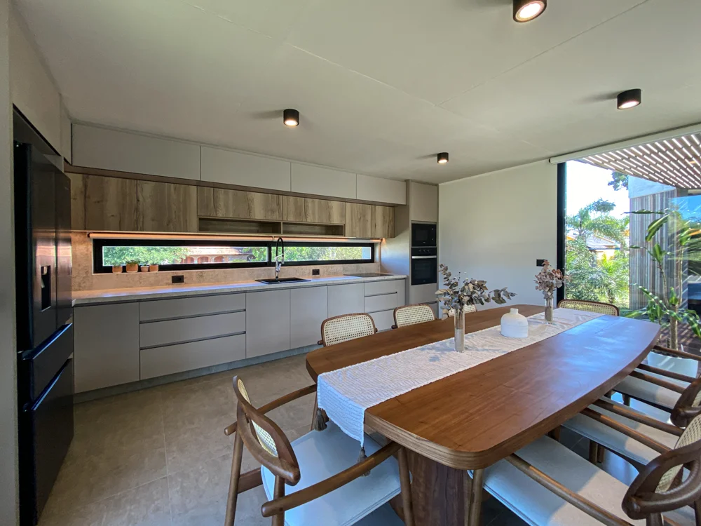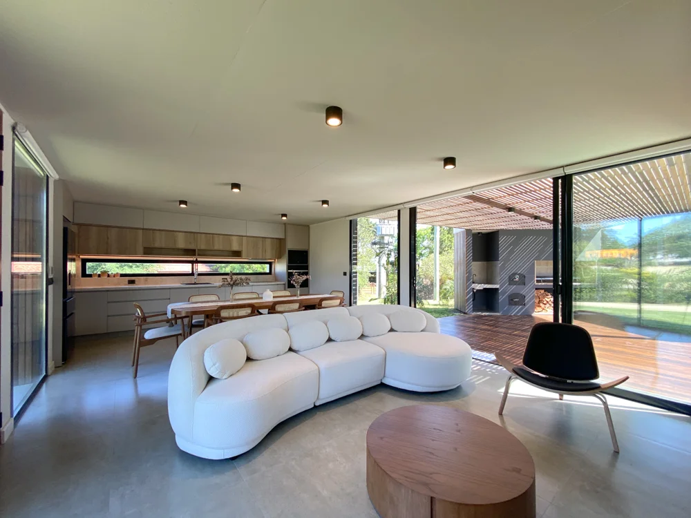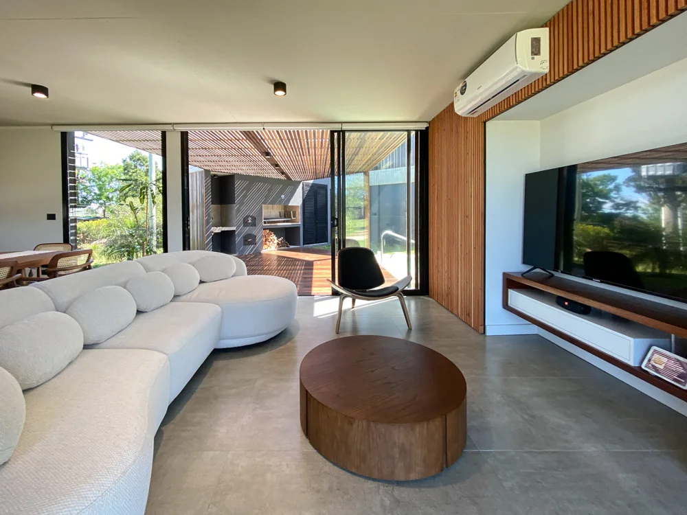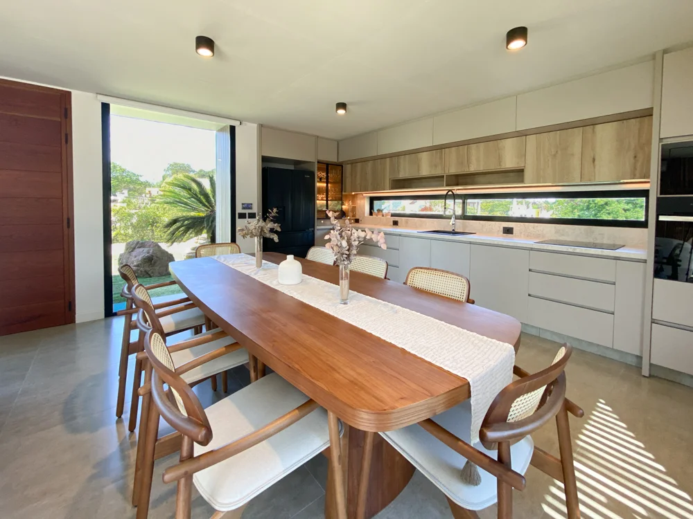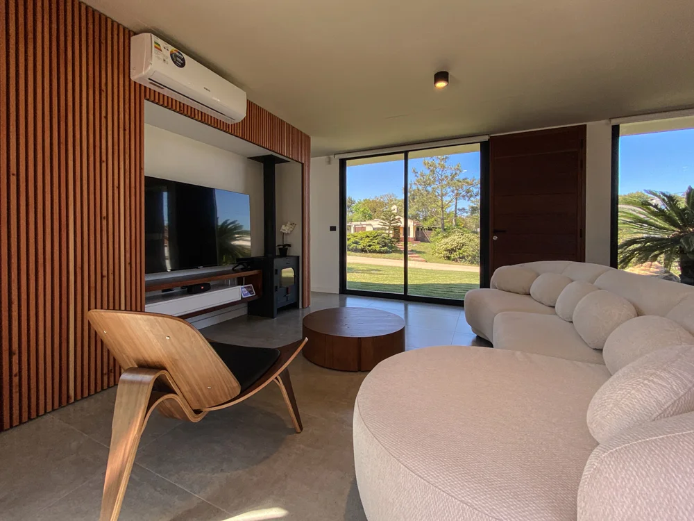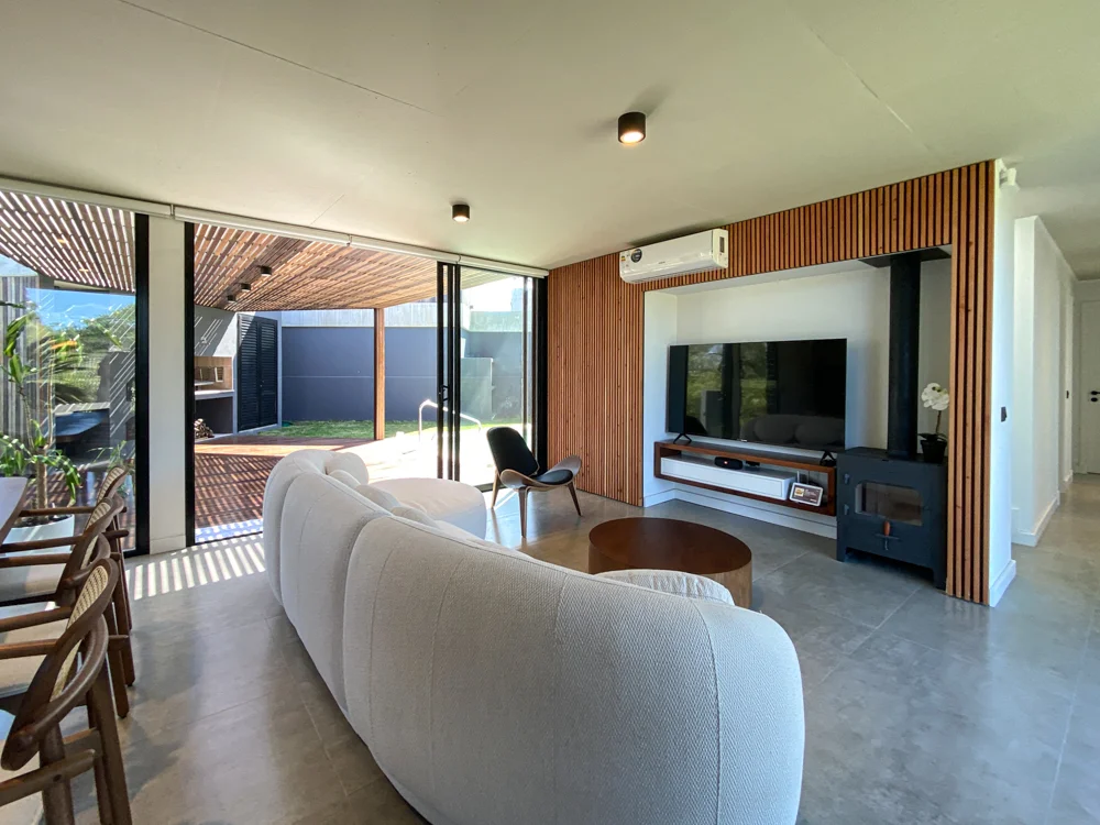 CASA SAN FRANCISCO MALDONADO CA501335 En pleno balneario San Francisco, a menos 100mts de la mejor bajada a la playa del lugar, siendo este caracterizado por su hermosa costa y con edificaciones de mediano y gran porte se desarrolla la siguiente moderna propiedad de construcción tradicional en ticholo, aberturas en DVH y detalles en madera de excelente calidad. En el interior ubicamos luminoso living comedor con cocina integrada con electrodomésticos empotrados, muebles aéreos y bajo mesada, en planta baja dos dormitorios y un baño completo mientras que por cómoda escalera iluminada accedemos al dormitorio principal con baño en suite que al igual que el de planta baja cuenta con mampara en aluminio negro y cristal de techo a piso y balcón con vista parcial a la costa. En el exterior, frente ajardinado con entrada para vehículo, mientras que en el fondo hermoso deck de madera, piscina y pérgola con parrillero en acero inoxidable con horno a leña y depósito. Cabe destacar que la propiedad cuenta con domótica y en el precio se incluye: horno, lavavajilla y microondas empotrados, tres calefones, dos aires acondicionado inverter inteligente, placares en todos los dormitorios y cortinado.