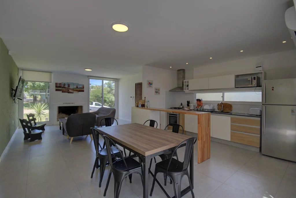 Distribuida en una sola planta, cuenta con un amplio living-comedor con estufa a leña, cocina integrada y totalmente equipada; pasillo de distribución conduce a hacia un baño completo y los tres dormitorios (principal en suite). Cuenta con placares en todos los dormitorios y aire acondicionado en todos los ambientes.
