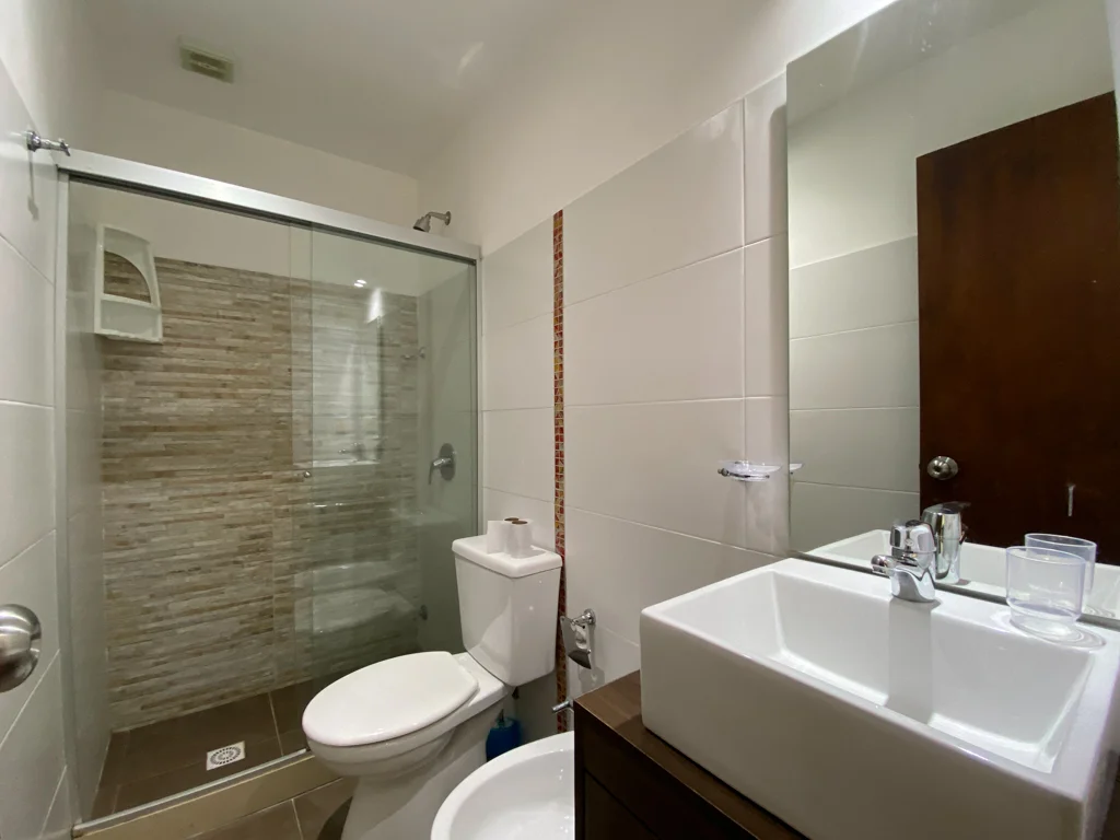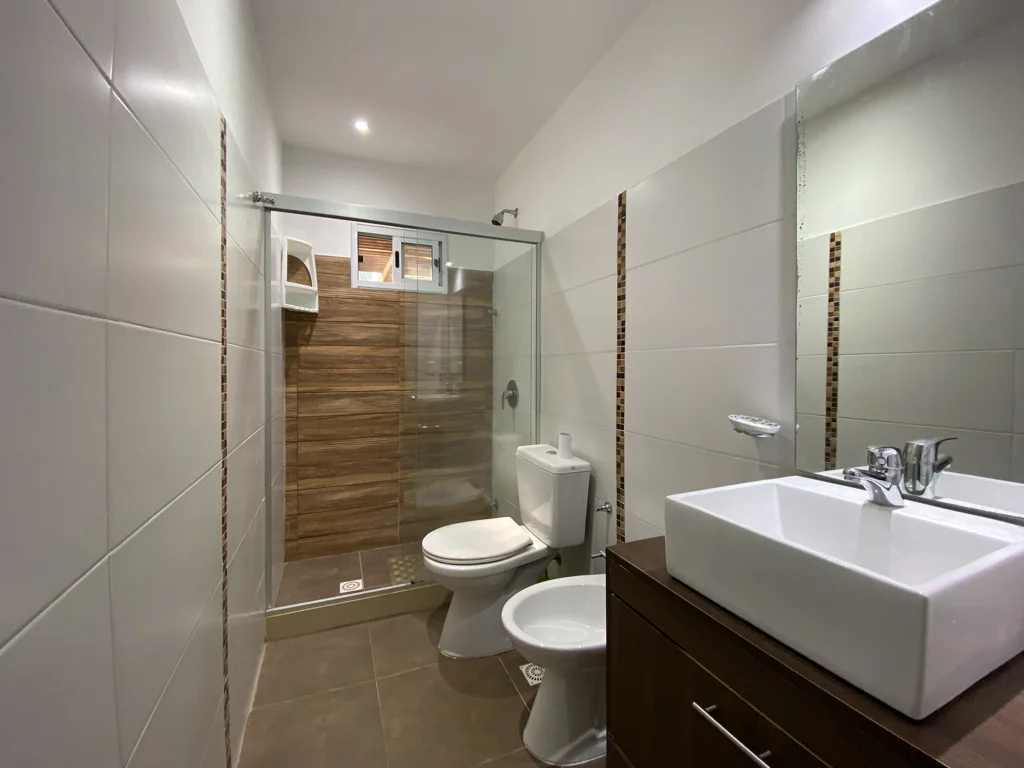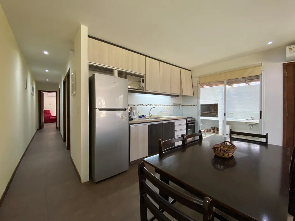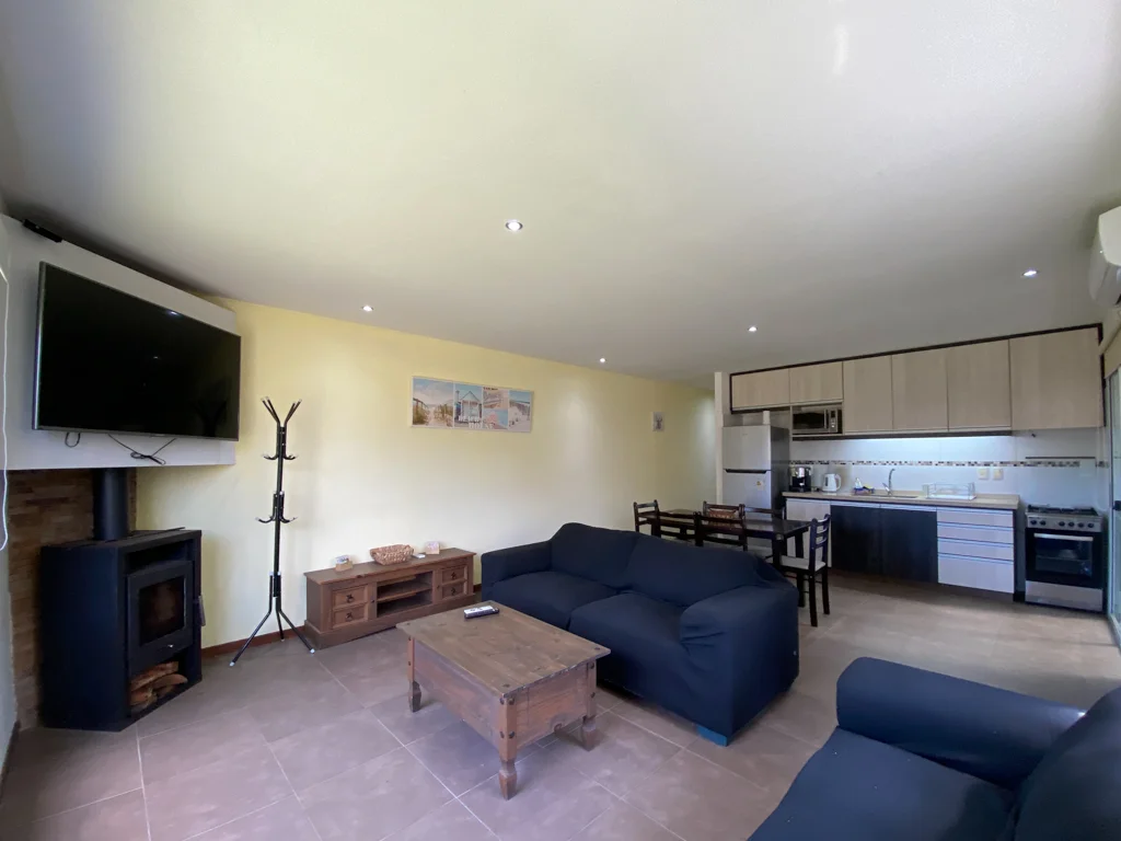 Distribuida en una sola planta, cuenta con amplio living-comedor con estufa de alto rendimiento y cocina integrada, pasillo de distribución conduce hacia el baño social completo, dos dormitorios y el tercer dormitorio que se encuentra en suite. Ambos dormitorios poseen placares y aire acondicionado.