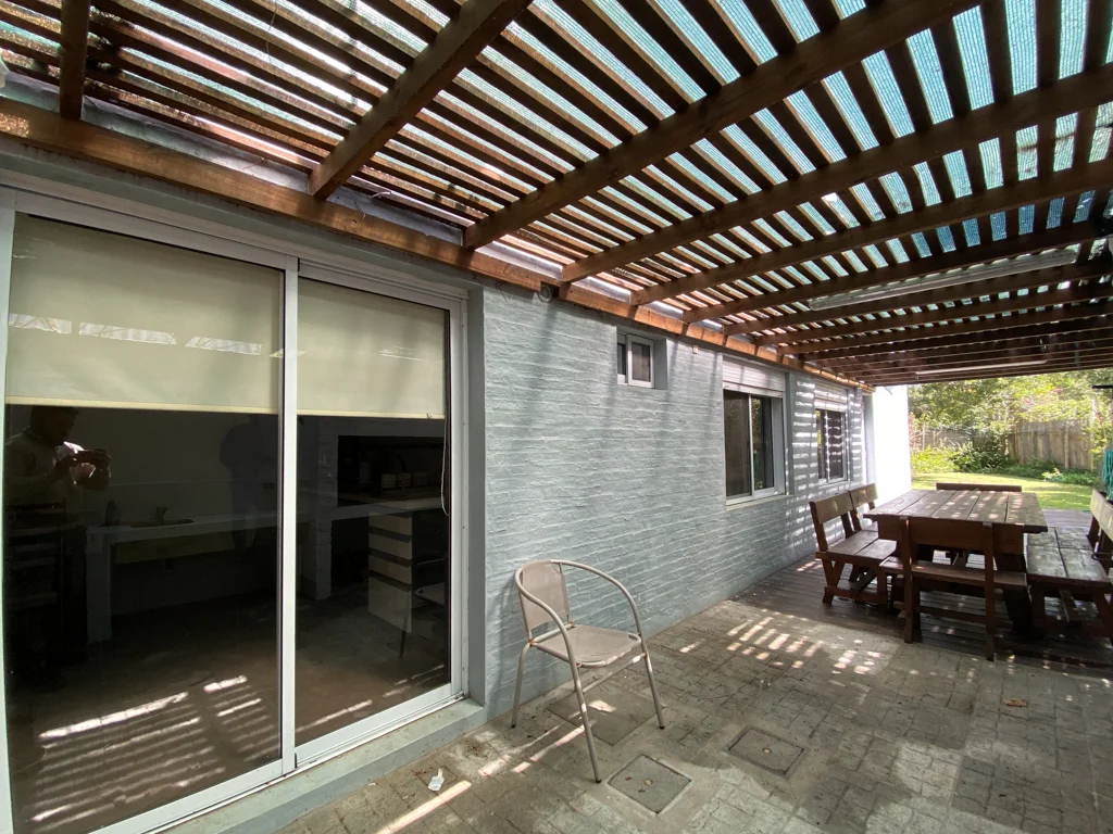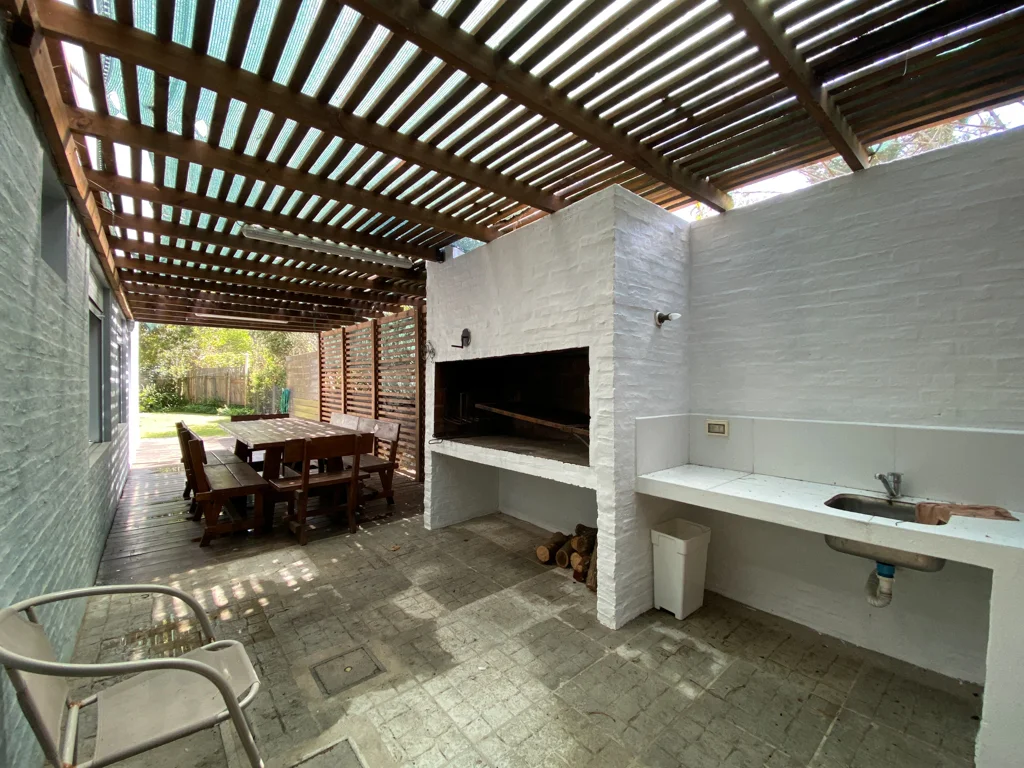 Predio cercado perimetralmente, sobre el lateral, un cómodo parrillero con deck de madera y pérgola.