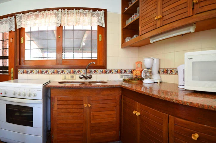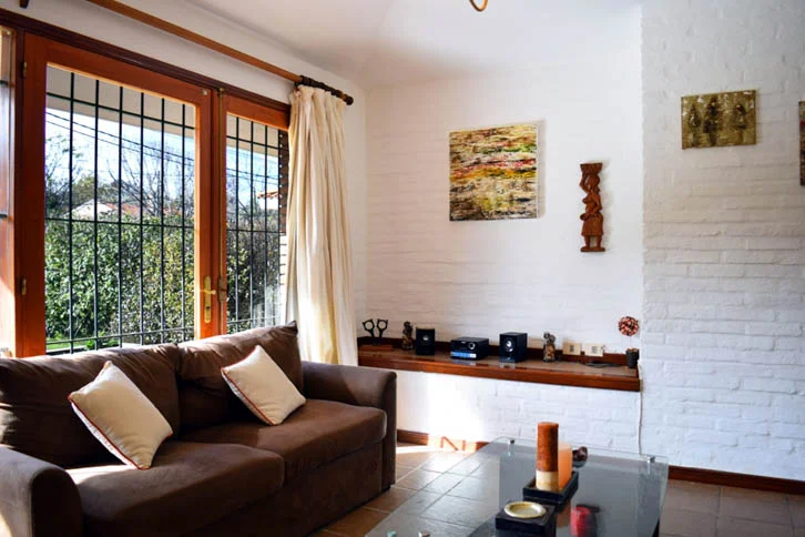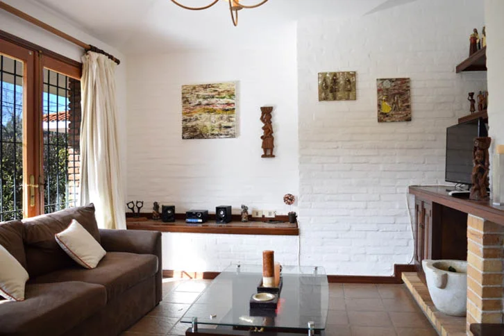 Distribuida en una sola planta, sólida construcción de excelentes terminaciones, muro doble en el exterior, techo de losa con cubierta en teja asfáltica, aberturas de madera, con postigos y rejas. Cuenta con un cómodo living con estufa a leña, comedor y cocina semi-integrada; todo muy bien iluminado por amplios ventanales. Mediante pasillo de distribución, se accede hacia los tres dormitorios, equipados con placar de madera y el baño completo.