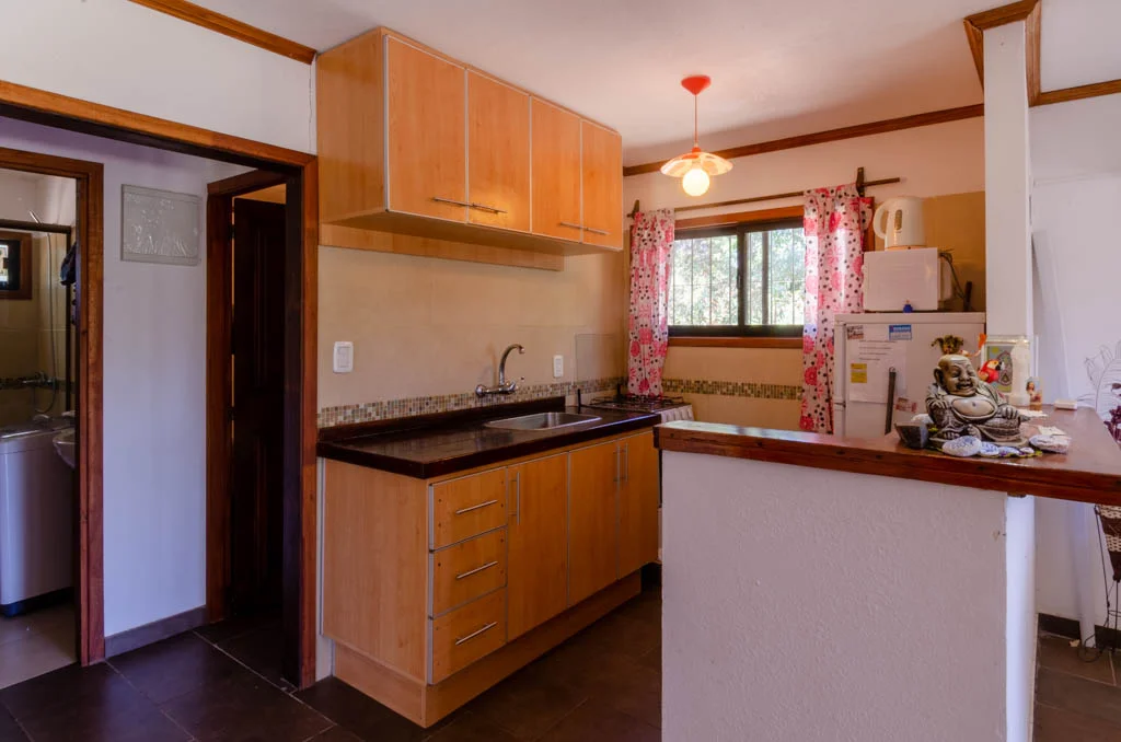 El bien se distribuye todo en una planta; luminoso living comedor, cocina integrada la cual se integra al parrillero dándole una fácil circulación y practicidad, estufa a leña, baño completo, practico dormitorio matrimonial y dormitorio secundario. Apartamento de servicio con kitchenette y baño completo. Cabe destacar que en todas las aberturas hay rejas y cuenta con alarma. Ideal para disfrutar del verano.