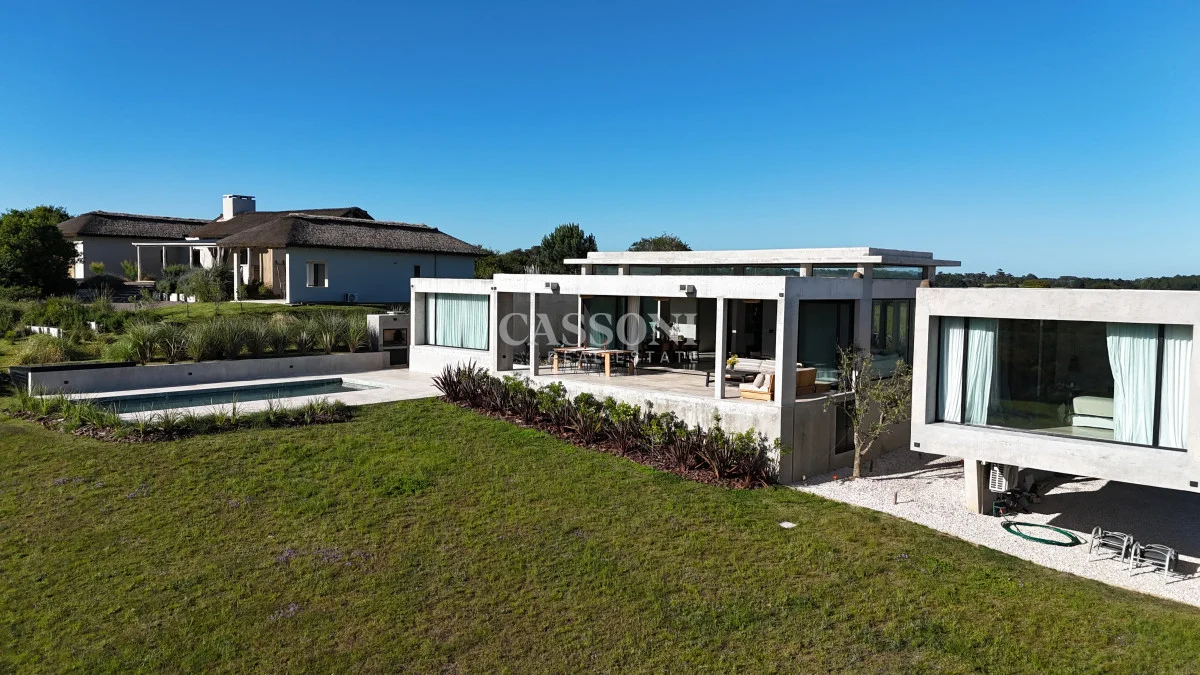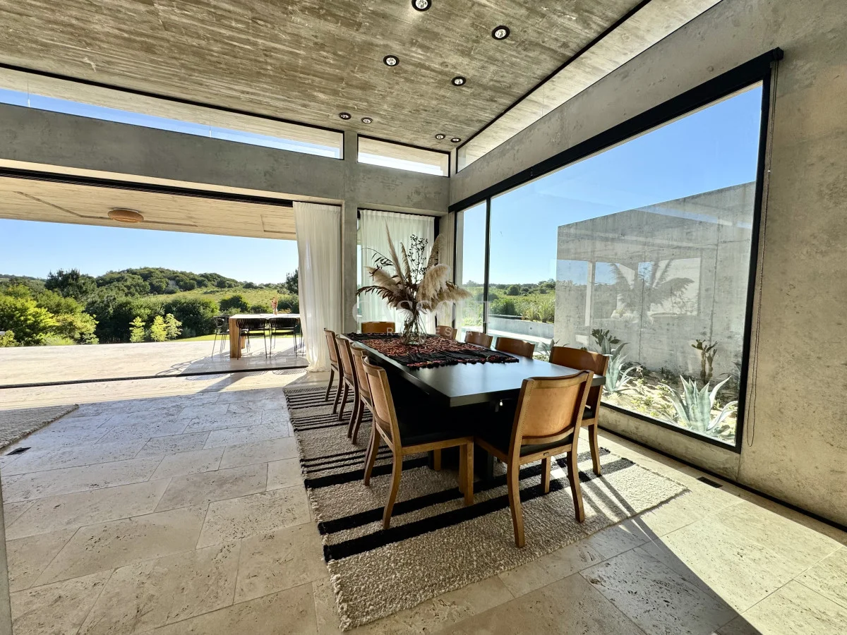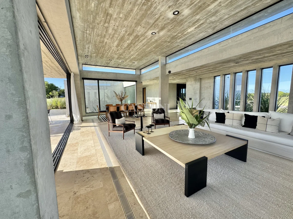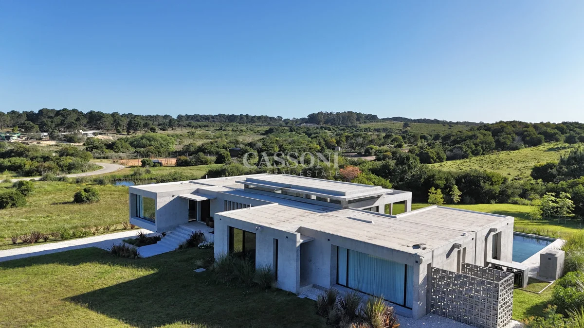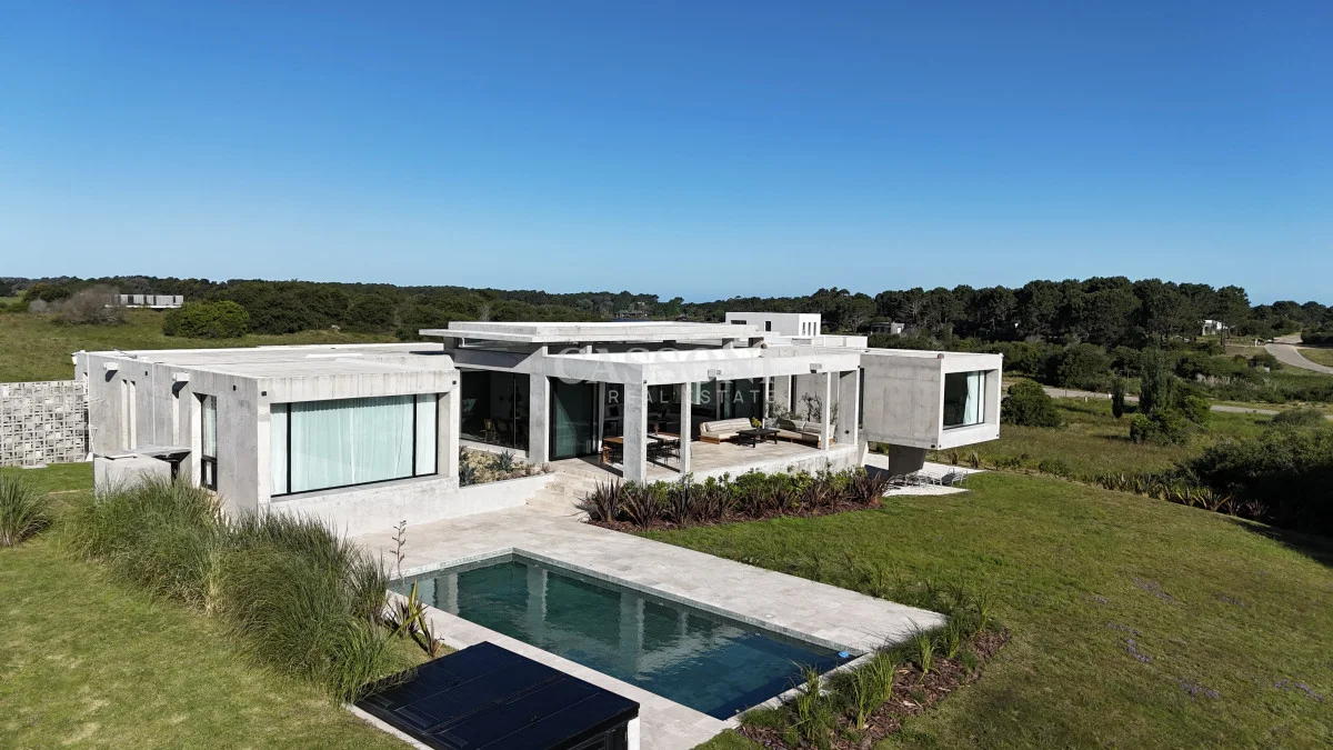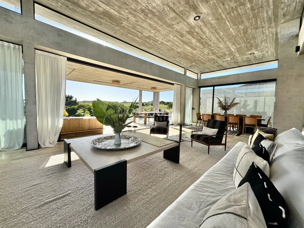 En Laguna Escondida aparece una casa que redefine lo que significa vivir moderno en la costa. Construida íntegramente en hormigón, con líneas puras y una estética contundente, se abre hacia un paisaje donde el campo se extiende sin una sola construcción que interfiera con la paz del entorno.