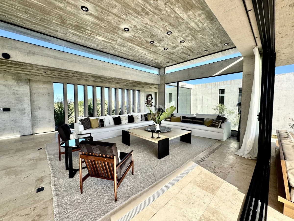 La luz entra a través de grandes paños de vidrio, atraviesa los dos livings y se desliza por los suelos cálidos gracias a la losa radiante, mientras el aire por conductos mantiene la temperatura perfecta durante todo el año. Cada espacio está pensado para disfrutar en silencio, con esa sensación de refugio contemporáneo que da el hormigón cuando se mezcla con la naturaleza.