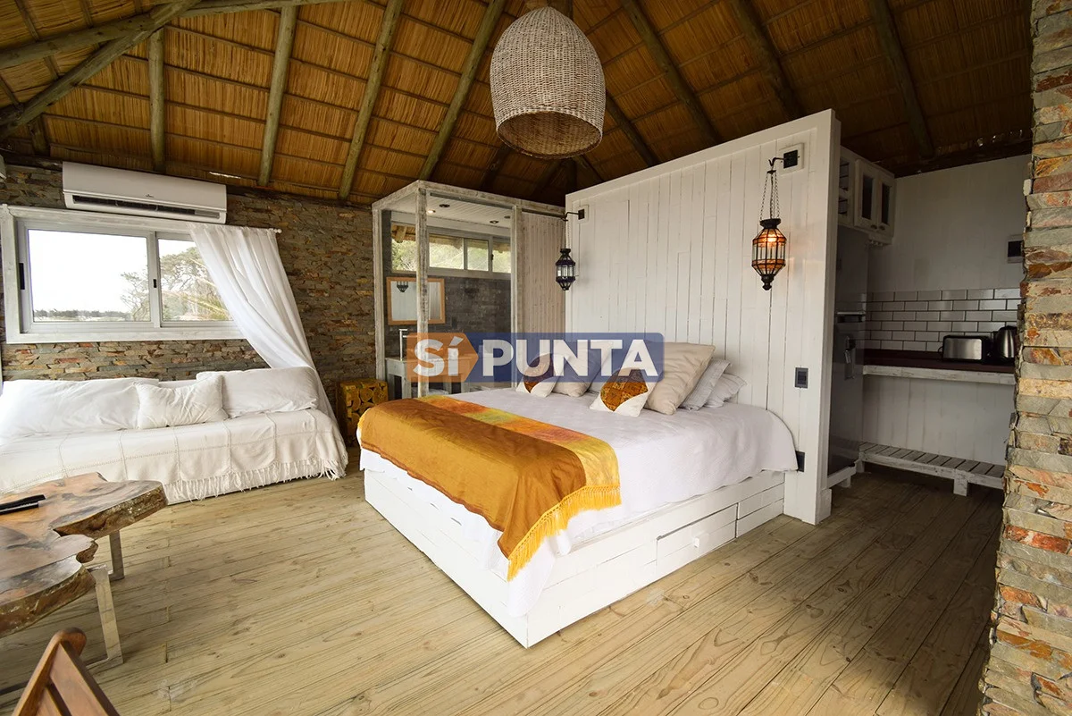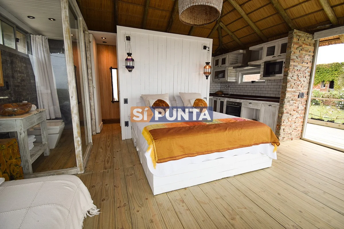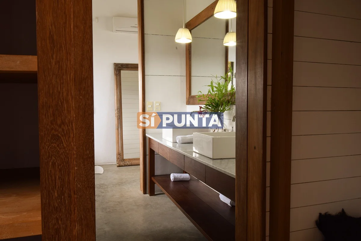 Los espacios exteriores están dotados de grandes dimensiones. Piedra y madera componen su esqueleto haciendo de ella un proyecto rústico con look actual.