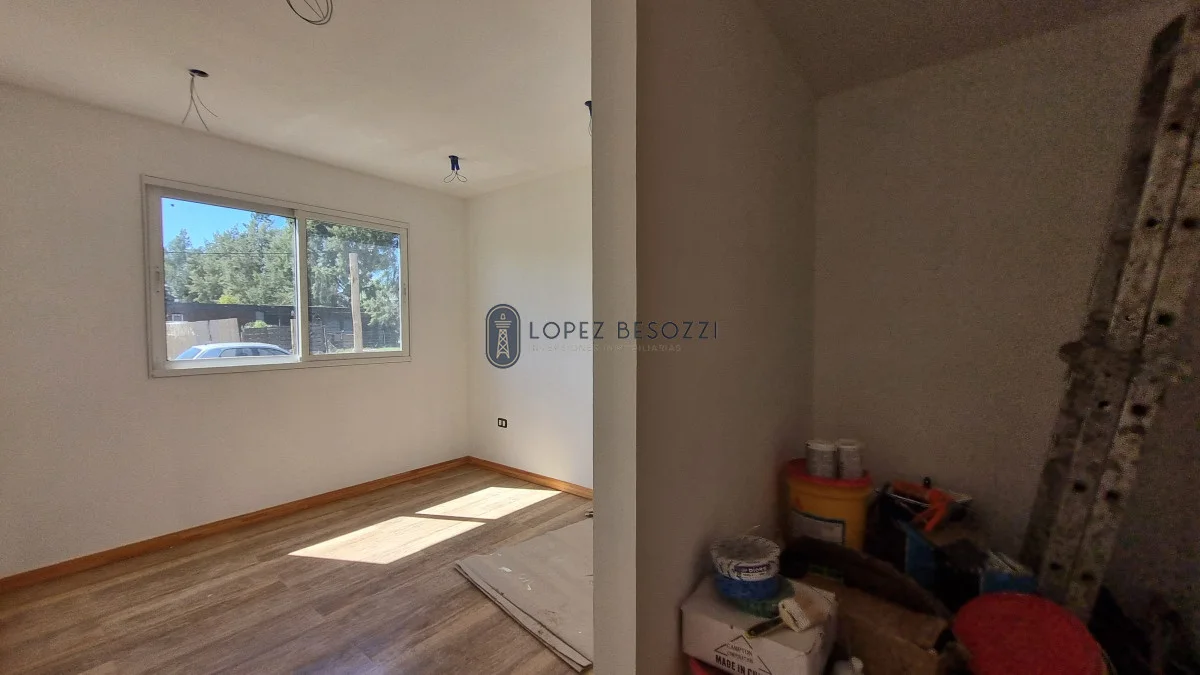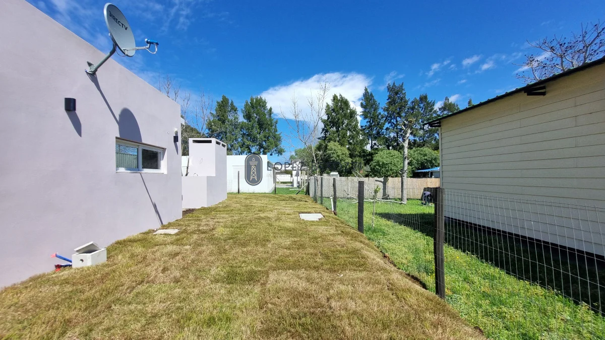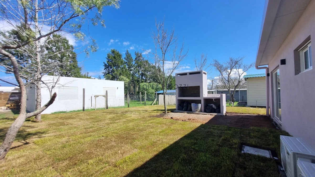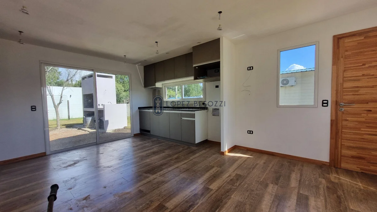 La casa que se encuentra a estrenar en construcción en seco (Steel Framing); aberturas en aluminio con vidrios dobles (DVH); pisos en porcelanato, techo de isopanel con cielorraso en yeso e iluminación LED; muebles empotrados en cocina hechos a medida ya instalados Horno y anafe.