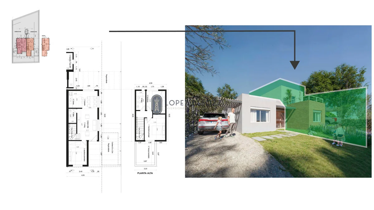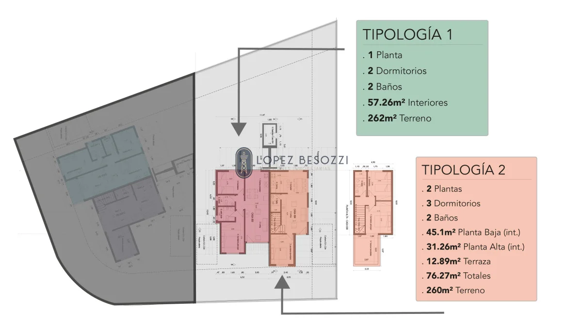 En Planta Alta, dispondrá de dos dormitorios (principal con terraza panorámica) y baño completo; fondo con parrillero; depósito y sobre el lateral; cochera apara vehículos.