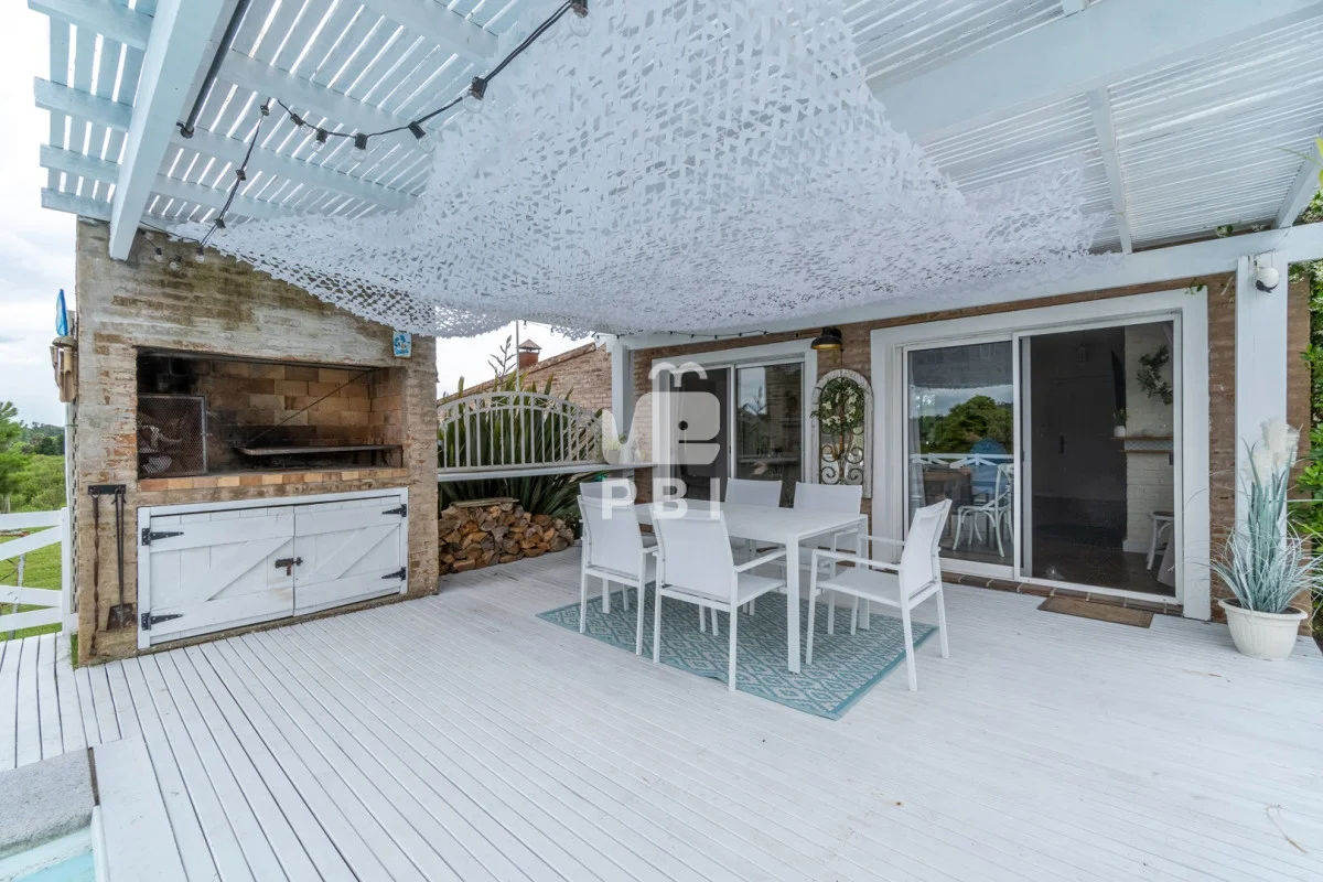 Con casa de 3 dormitorios (1 suite), 2 baños completos, cocina comedor, living con estufa a leña, terraza con parrillero cubierto que da un deck con piscina.