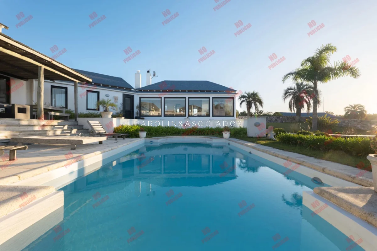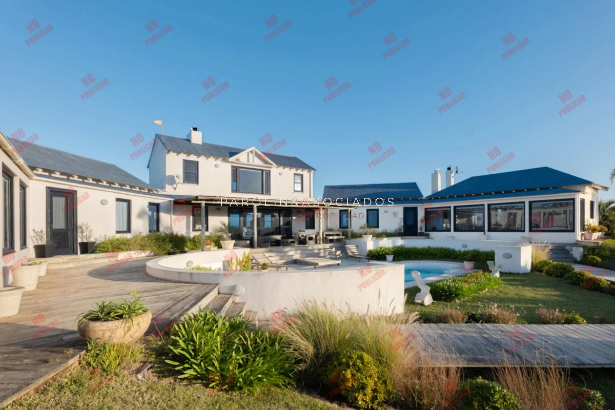- Exterior Impresionante: Amplias galerías rodean la casa, ofreciendo vistas panorámicas al mar y la piscina. Además, cerca de la casa principal se encuentran el garaje, un galpón de herramientas, una huerta y una casa de caseros.