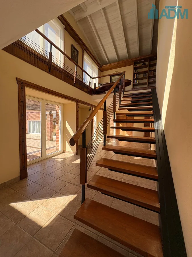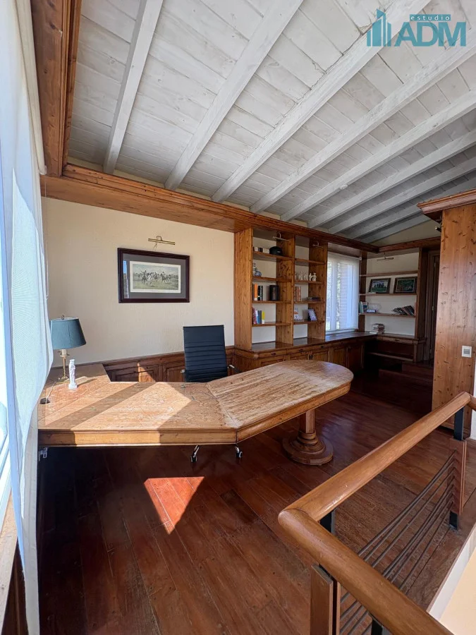 Subiendo las escaleras llegamos al escritorio con sus estanterias de madera y sus pisos de lapacho,el mismo se comunica con la master Suite,c ,2 vestidores, Ropero, Baño con jacuzzi,con muy lindas vistas.