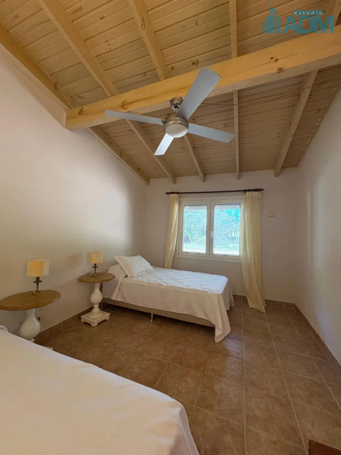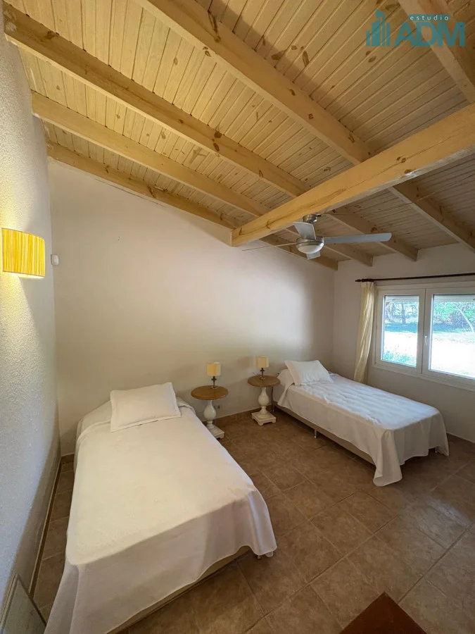 Por la entrada a la derecha tenemos un corredor que nos lleva a los dormitorios,una Suite, despues 2 dormitorios que comparten baño,luego una barbacoa para comer asados,luego afuera la parrilla y pergola,rodeada de la piscina.