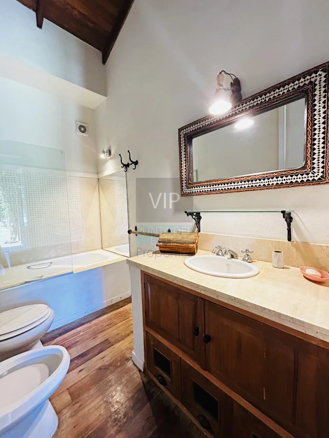 Una de las primeras construcciones de piedra de la zona de Punta del Este, Uruguay. Bellísima propiedad diseñada para disfrutar todo el año, ofreciendo tranquilidad y el encanto del campo. La propiedad es ideal para recibir visitas y cuenta con: Casa principal: Una suite principal, dos dormitorios que comparten un baño y una suite en la planta alta. Área de huéspedes: Seis suites completas independientes. Espacios exteriores: Una hermosa piscina centralizada entre las construcciones y un jacuzzi para disfrutar de las noches estrelladas. Instalaciones adicionales: Zona de lavadero y casa para caseros. Es una oportunidad única para quienes buscan confort, historia y belleza en un entorno natural incomparable. Referencia Interna : Tera-2305