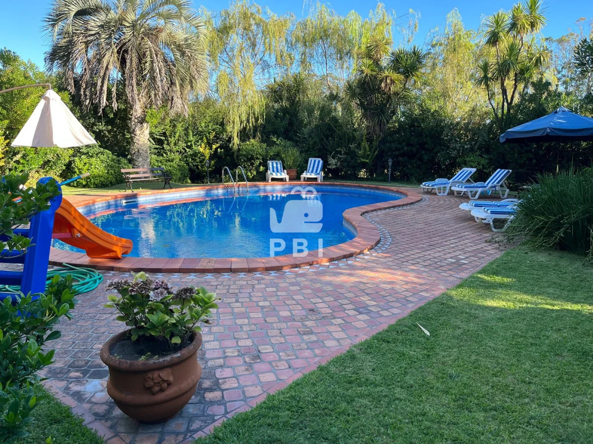 Importante cabaña con entorno inigualable. 2 hectáreas y media de parque perfectamente forestado. La gran cabaña cuenta con 3 dormitorios, living con estufa a leña, comedor, cocina, dependencia de servicio completa y garaje. Casa de huéspedes, piscina y un tajamar. Ideal para disfrutar del campo, a pasos del mar.