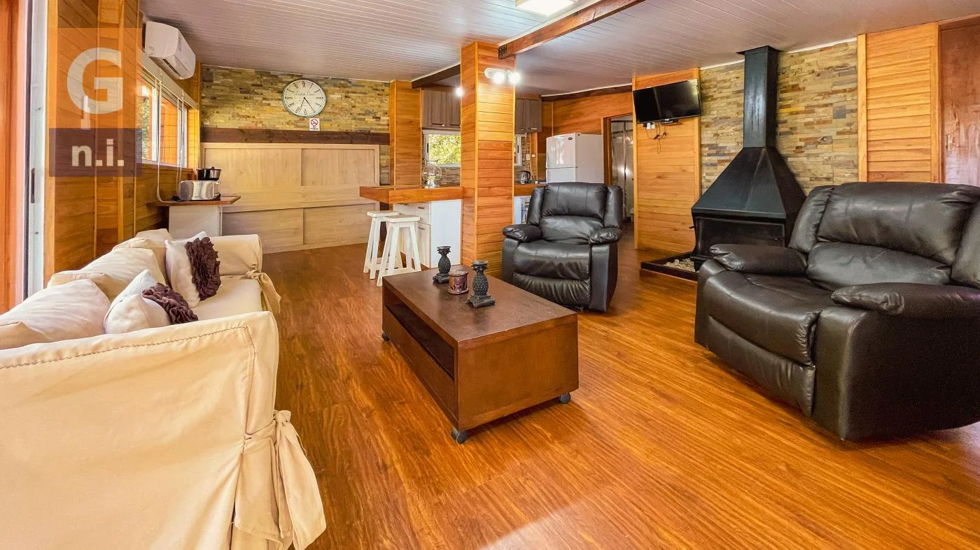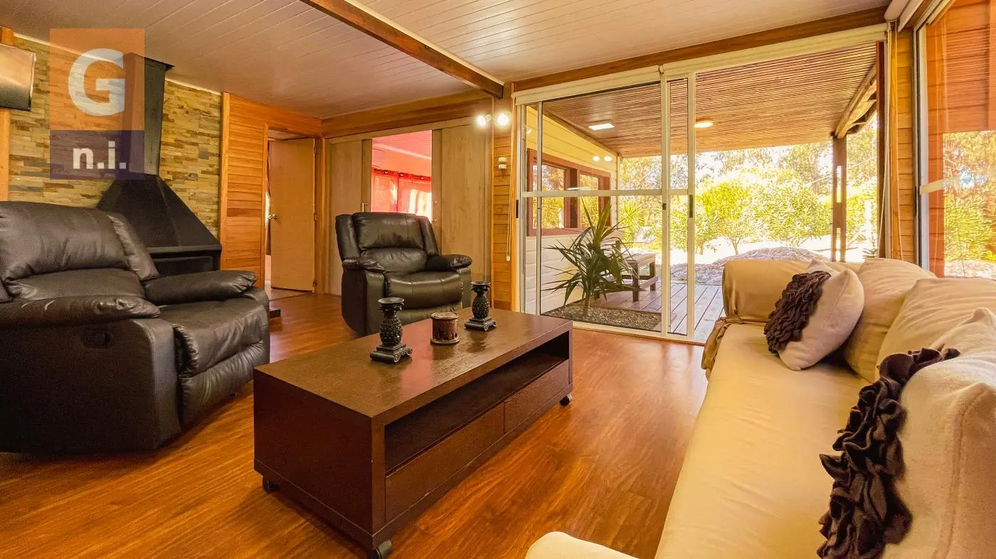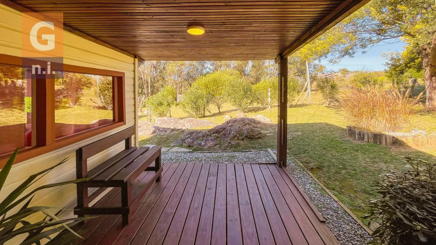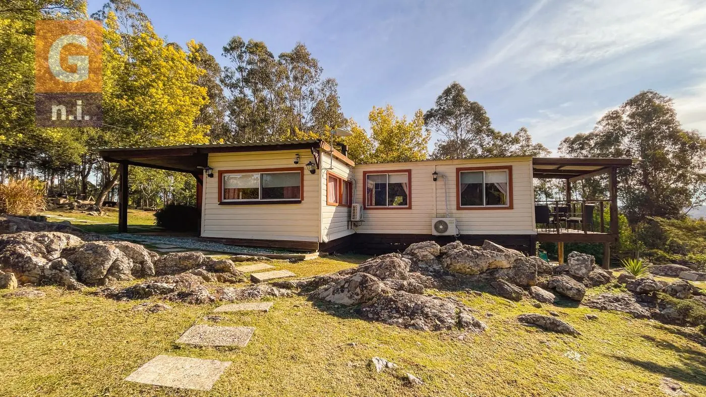 La cabaña principal presenta un amplio y luminoso living comedor con estufa a leña, cocina integrada, baño completo y dos dormitorios, uno de ellos con vestidor y terraza privada con vistas panorámicas hacia las sierras y la piscina. Además, cuenta con estacionamiento propio, barbacoa y piscina. Senderos internos recorren la chacra y conducen a un pintoresco tajamar.