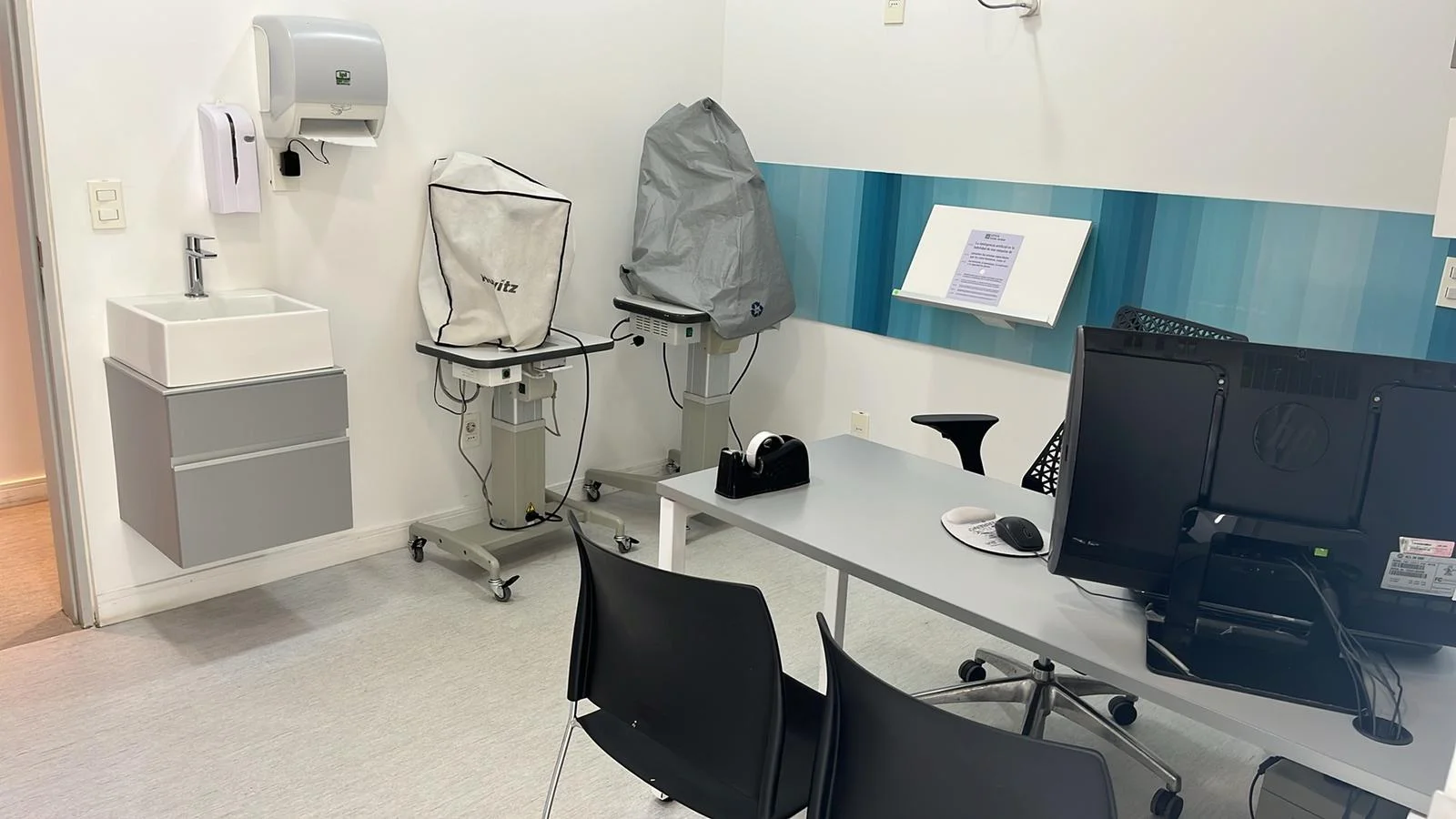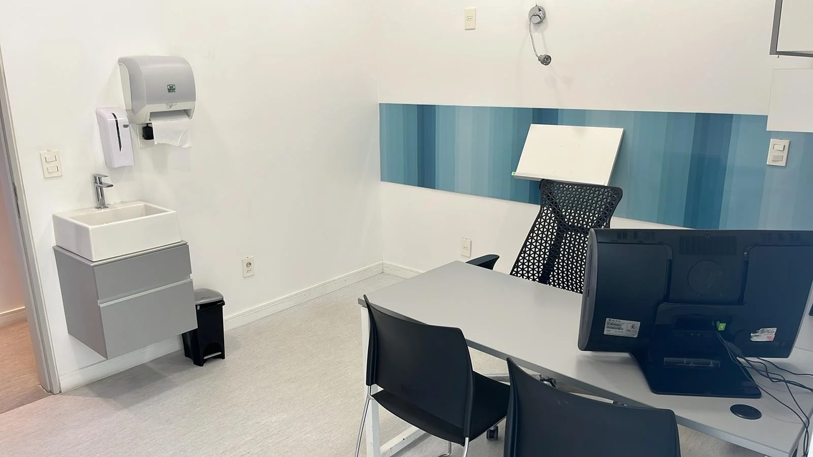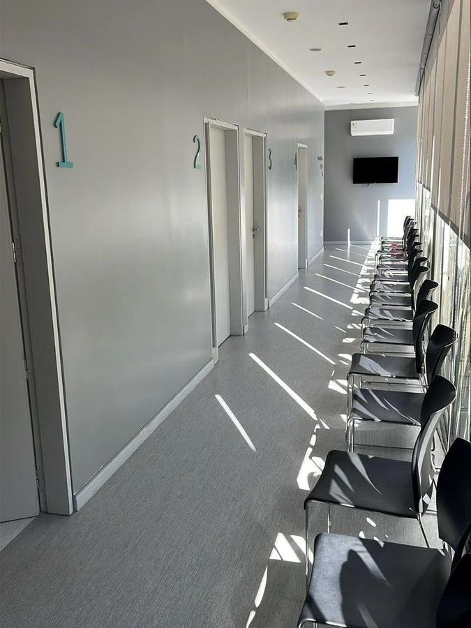 Cuenta con salas de esperas, recepción, 5 consultorios, 3 baños (uno inclusivo). Tiene acceso exclusivo de personal, así como también áreas destinadas a los mismos; como ser la kitchenette, el área de lockers y limpieza.