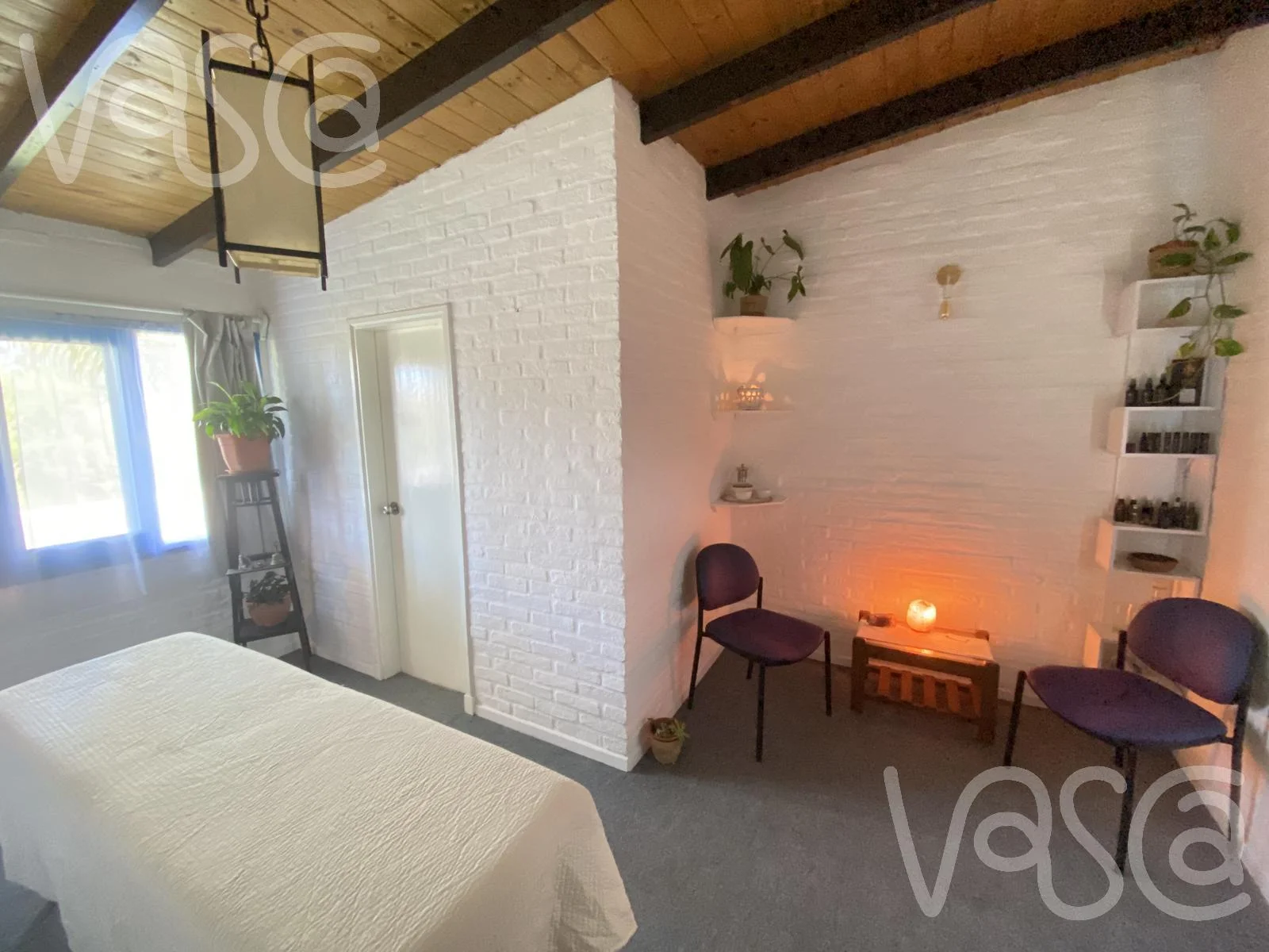 También dispone de un consultorio, perfecto para masajes o sesiones privadas, que puede adaptarse como quinta habitación según las necesidades del grupo.