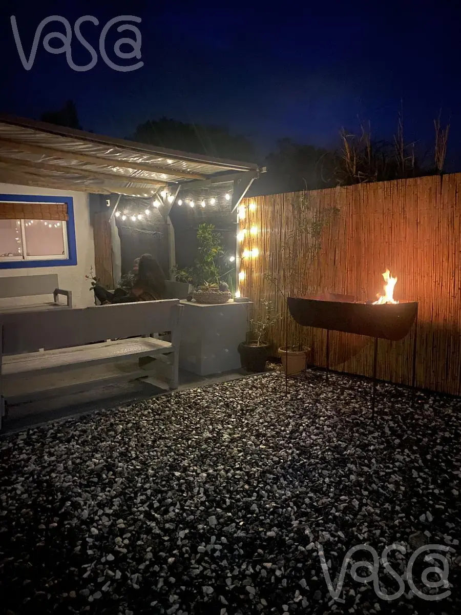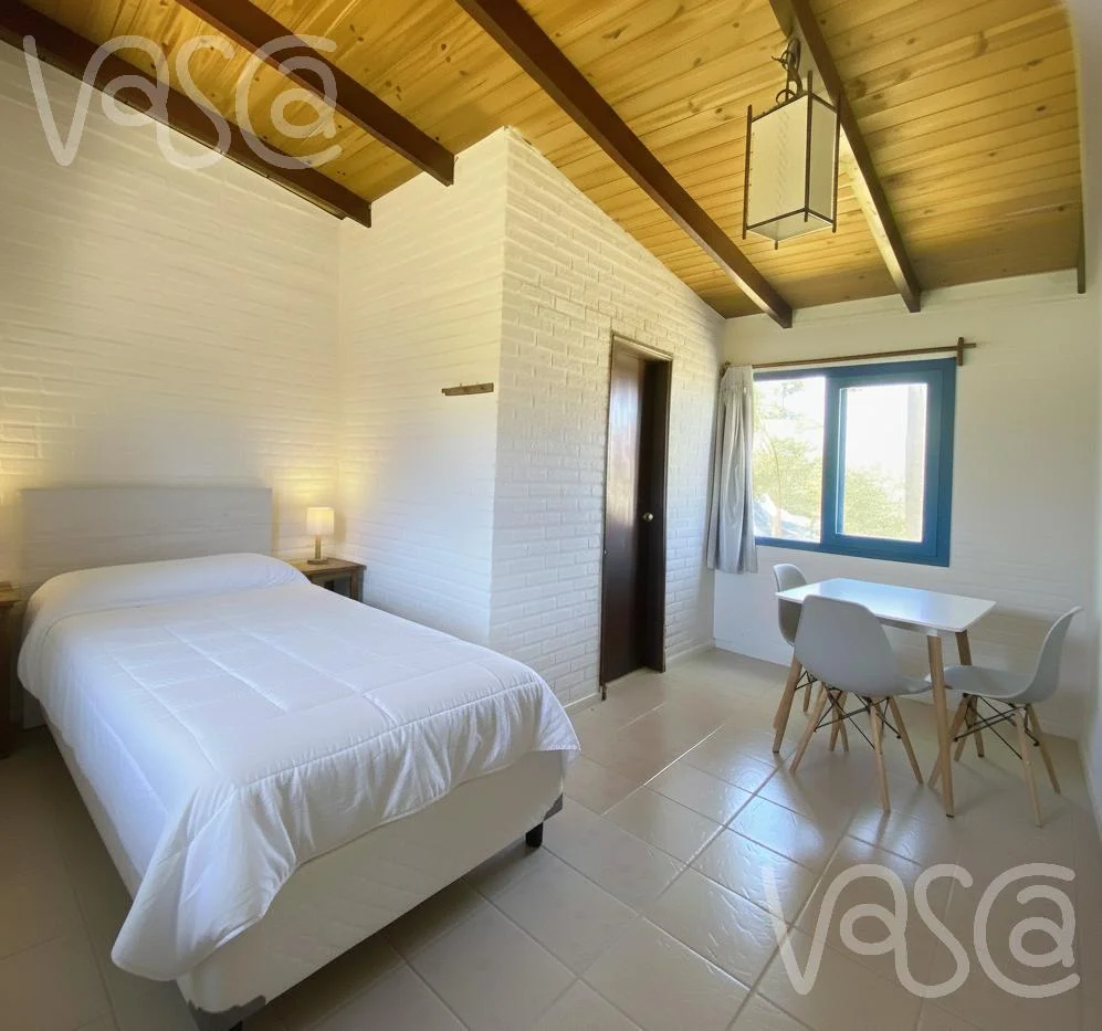 El corazón de la propiedad es la casa principal, que cuenta con living comedor y cocina integrada totalmente equipada, dormitorio matrimonial en suite y toilette.