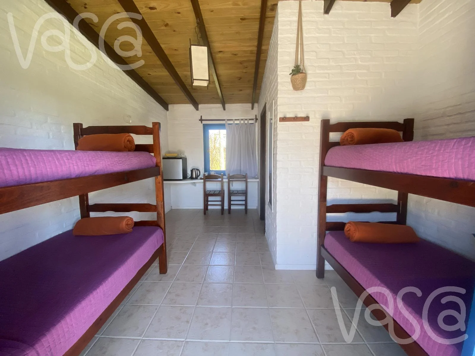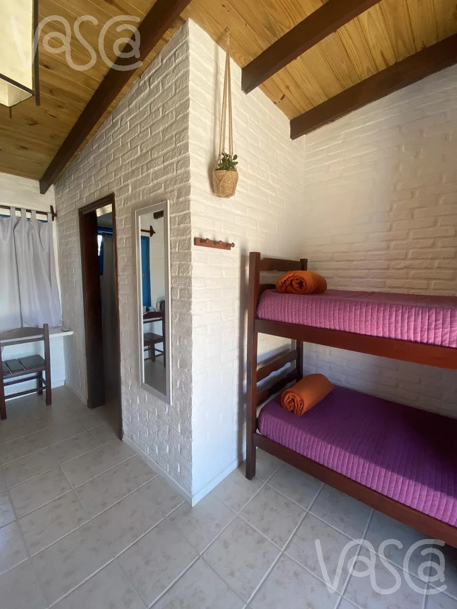 La propiedad cuenta con 3 dormitorios independientes de la casa principal: dos con cuatro camas cada uno y uno matrimonial, todos con baño privado.